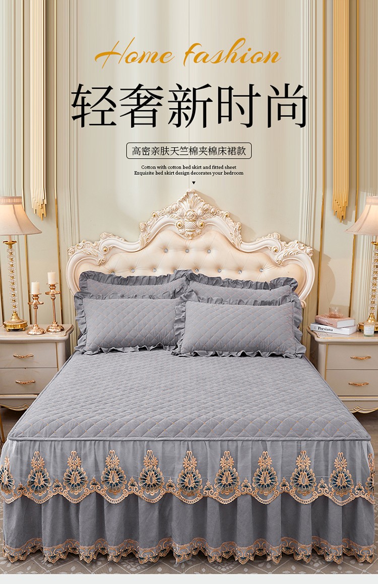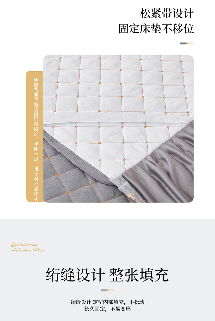 屹成家纺 2024新款天竺棉夹棉床裙 经典灰