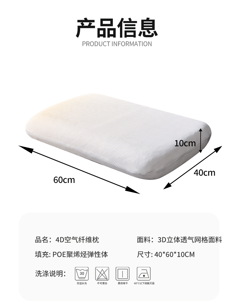 4d空气纤维枕【面包枕】,60*40/10空气纤维面包枕【裸芯】,60*40*10空气纤维面包枕【裸芯+枕套】