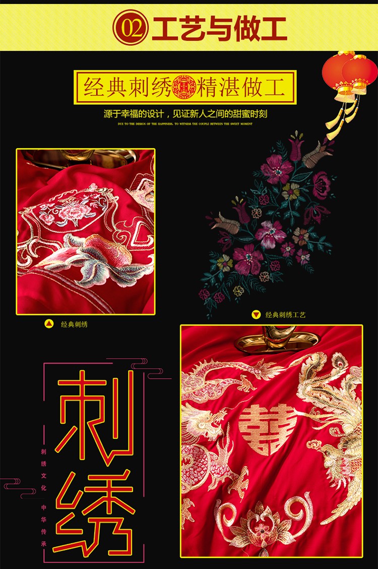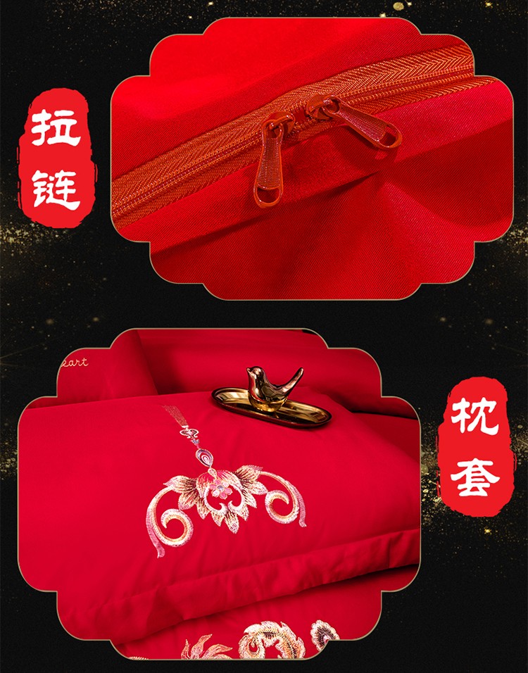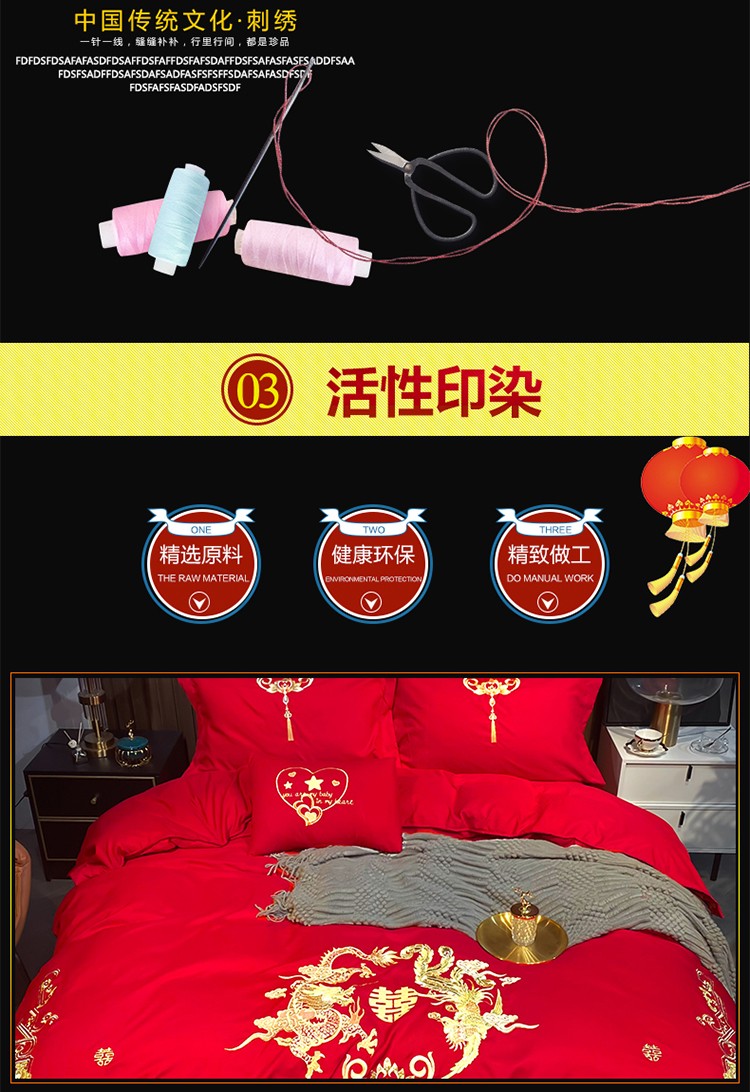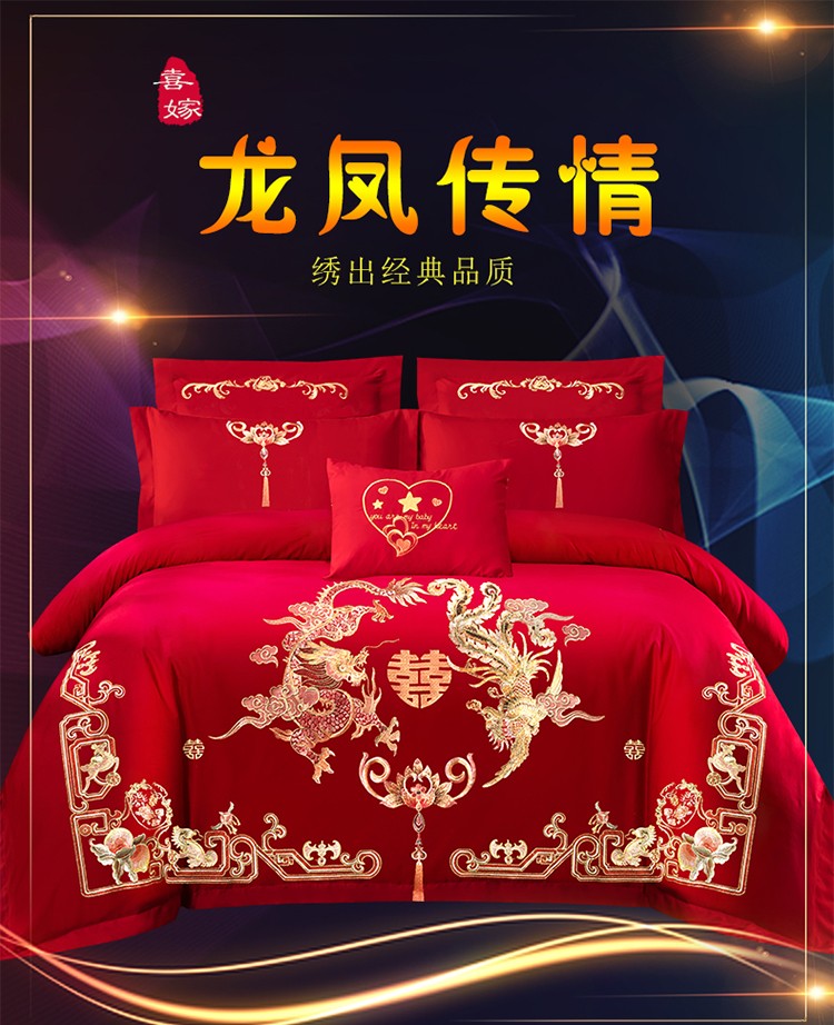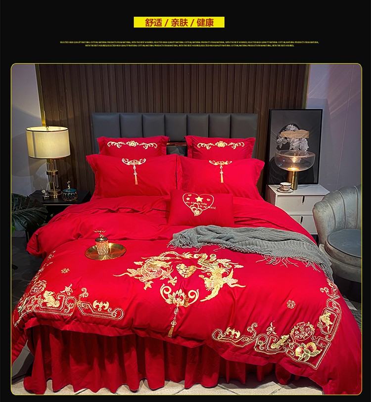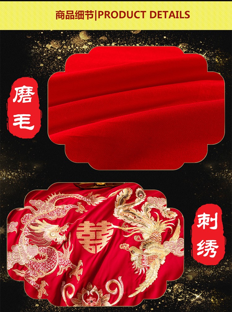 当前位置: 91家纺网 > 商品网购 > 床品套件 > 多件套 > 多件套 > 婚庆四件套大红色刺绣结婚六七件套多件套喜庆婚礼婚被床上用品 龙凤传情