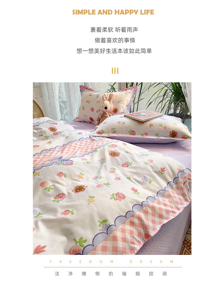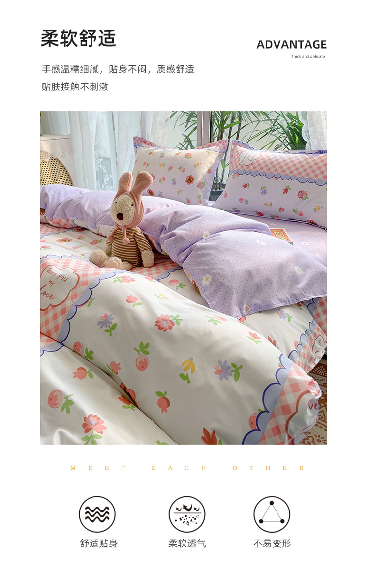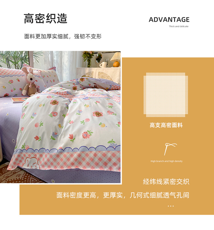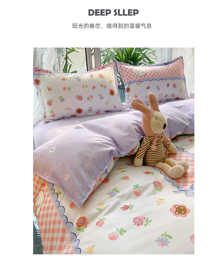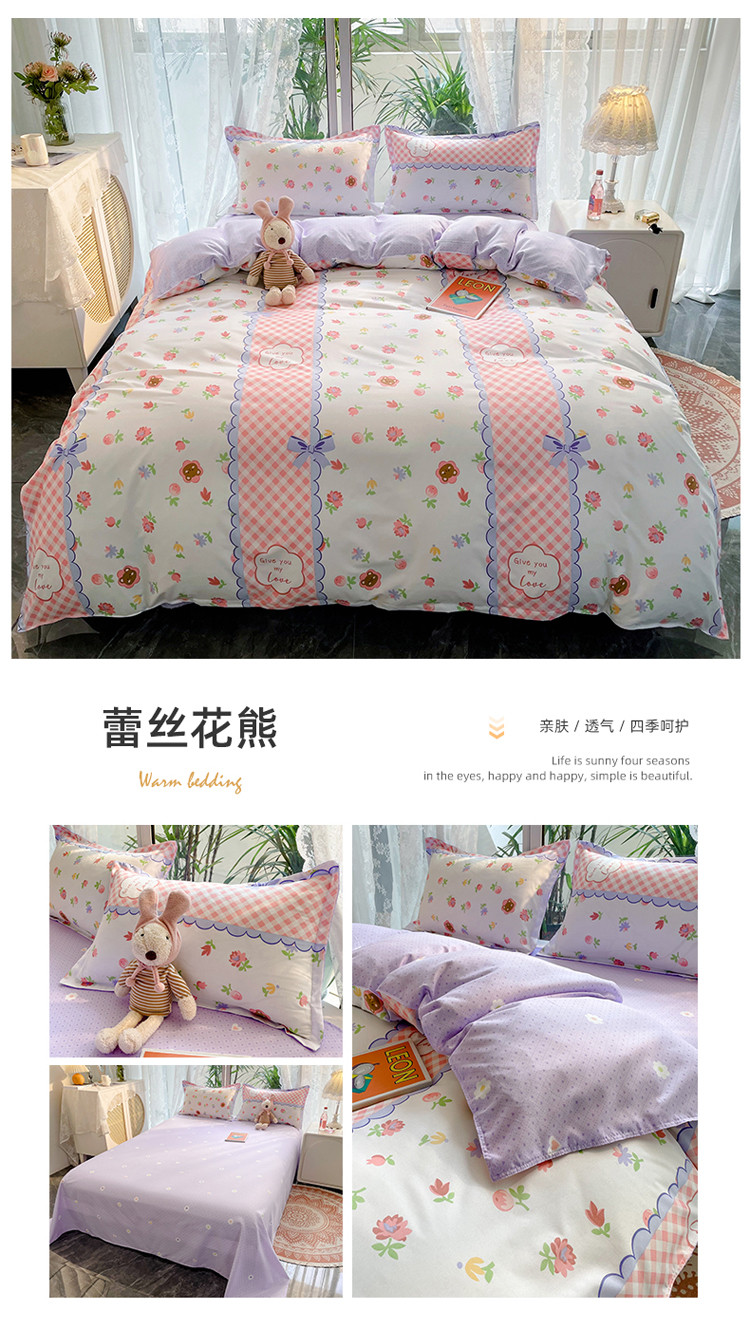 宏源家纺 2022新款亲肤棉芦荟棉四件套7月新花型 蕾丝花熊