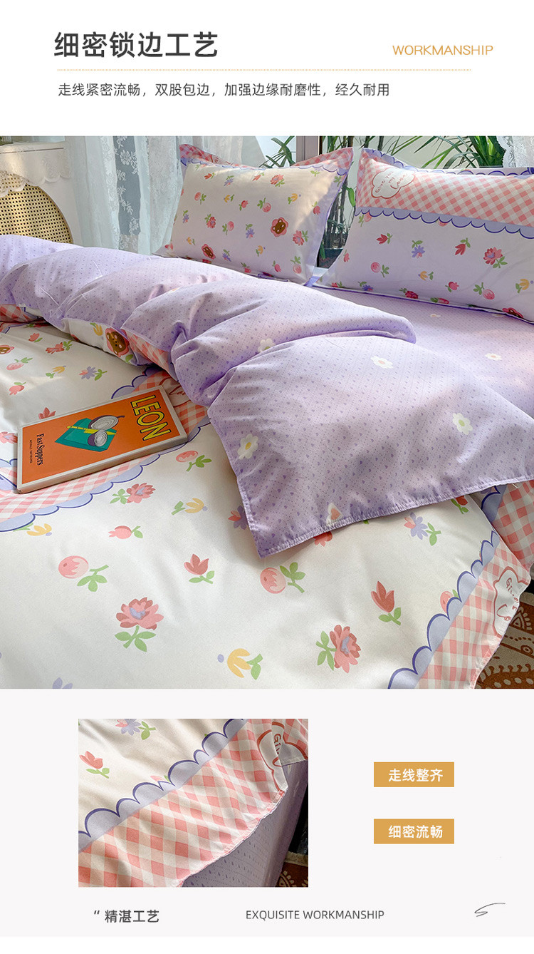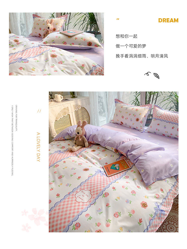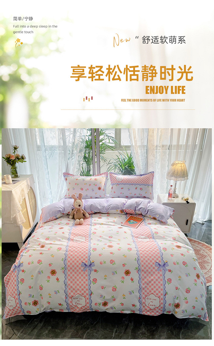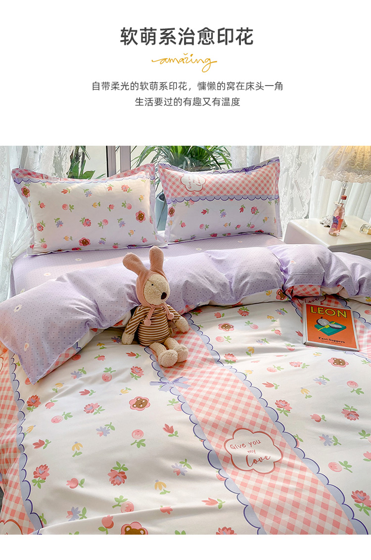 宏源家纺 2022新款亲肤棉芦荟棉四件套7月新花型 蕾丝花熊