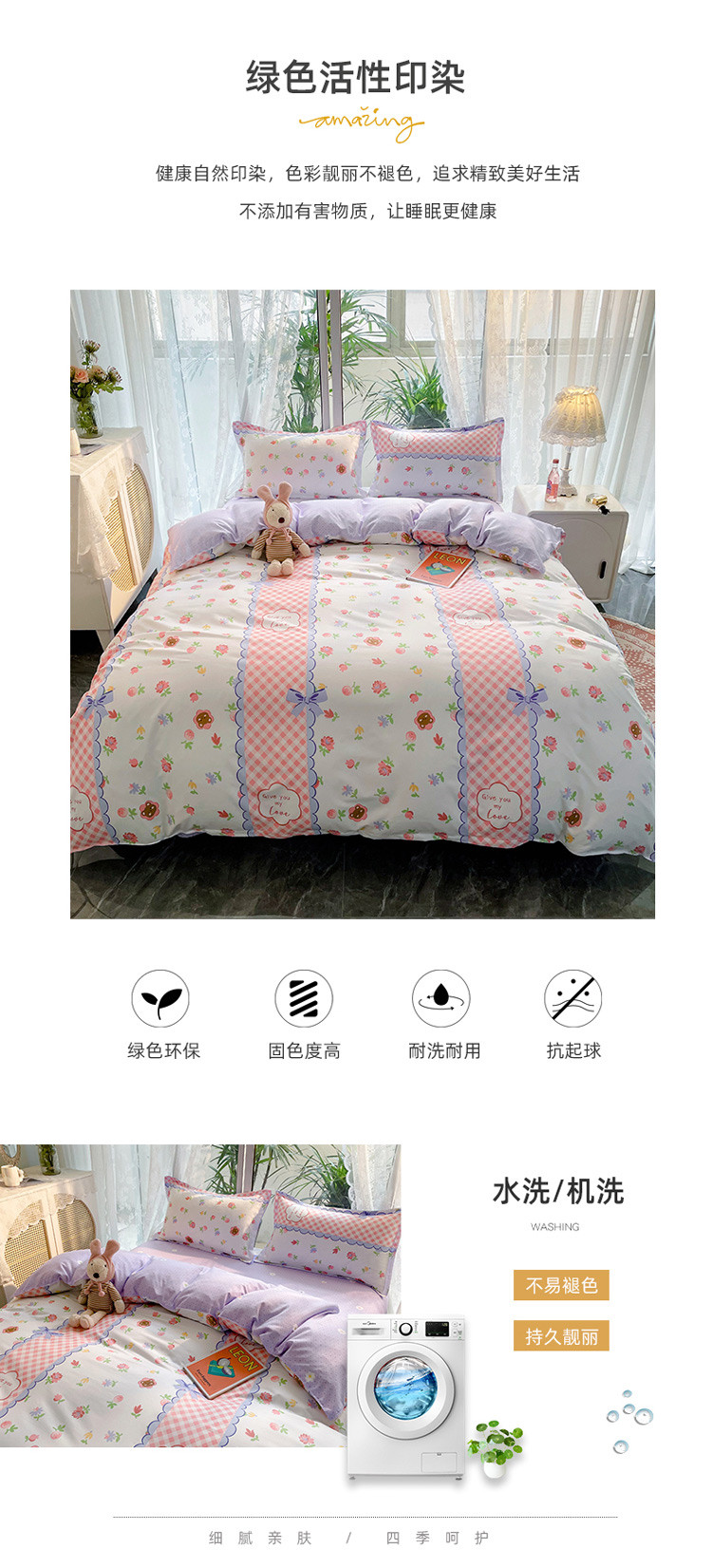 (总)宏源家纺 2023年4月新款芦荟棉亲肤印花四件套,宝藏,星黛兔,格韵,玫红黑条,粉心兔,绿黑条,花园兔