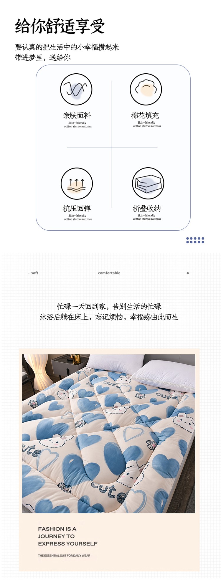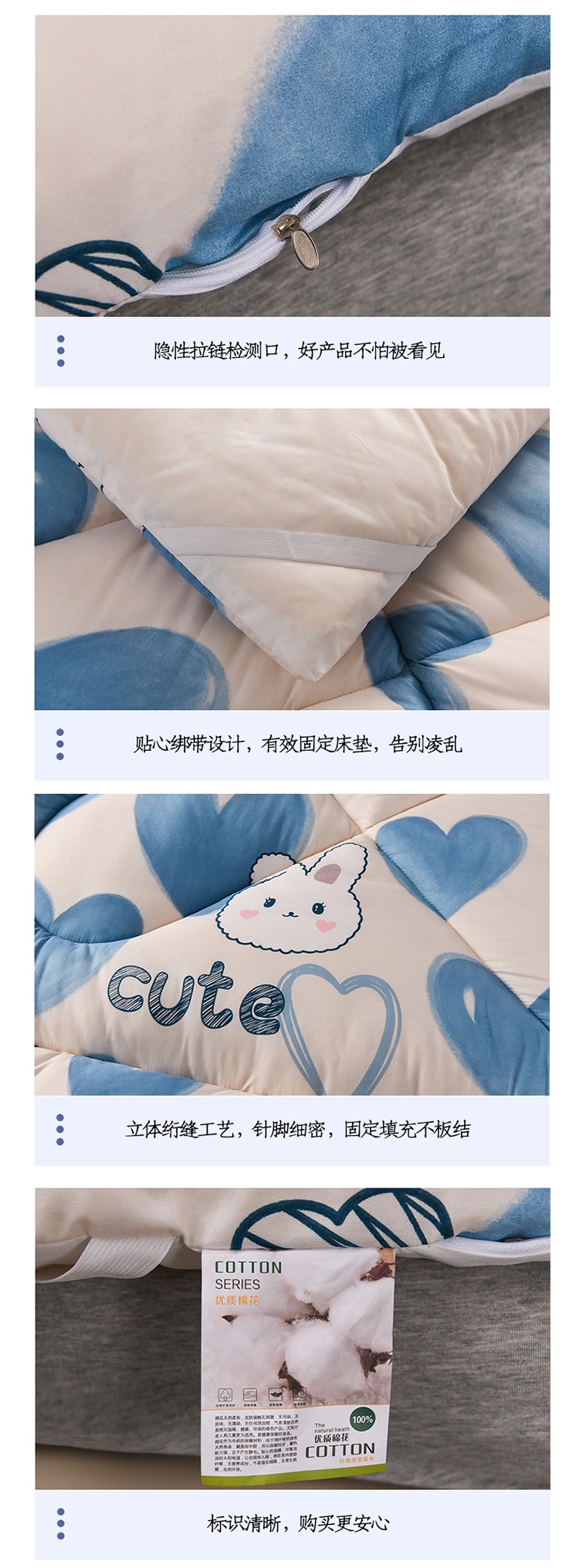 当前位置: 91家纺网 > 商品网购 > 床垫/床褥/床护垫 > 普通床垫 > 富威堡家纺2023新款亲肤棉印花床垫 爱心兔