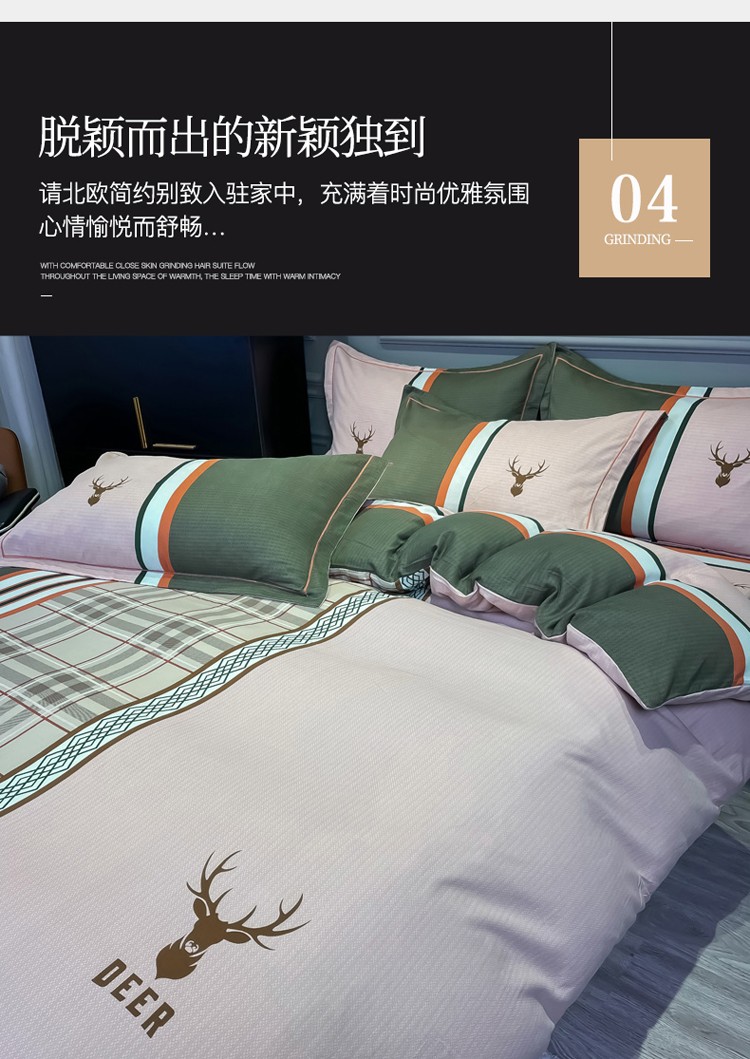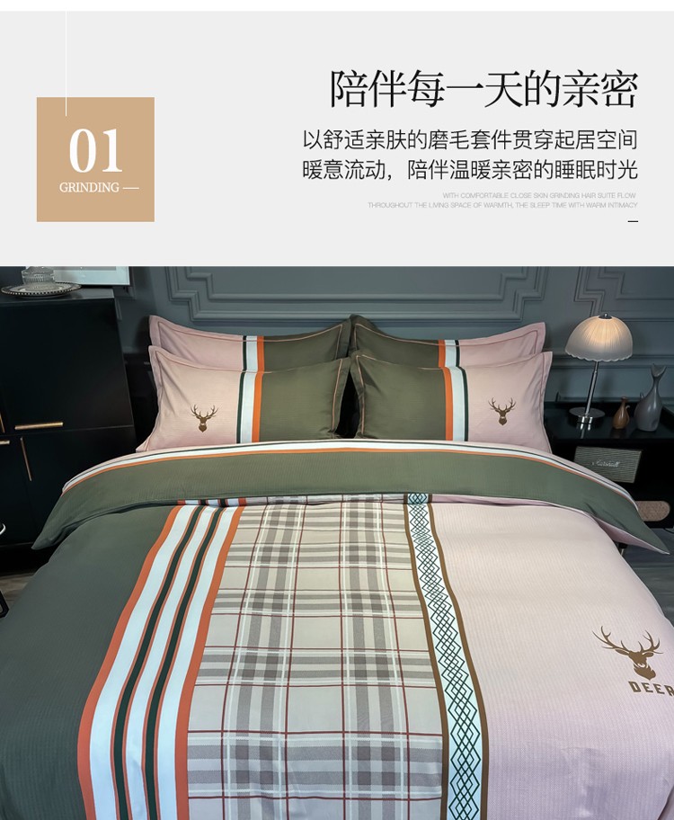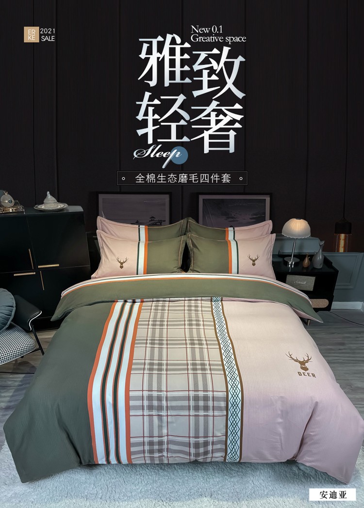 当前位置: 91家纺网 > 商品网购 > 床品套件 > 四件套 > 普通磨毛四件套 > 金爱家 2023新款大阪纯棉生态磨毛条格简约系列四件套 安迪亚