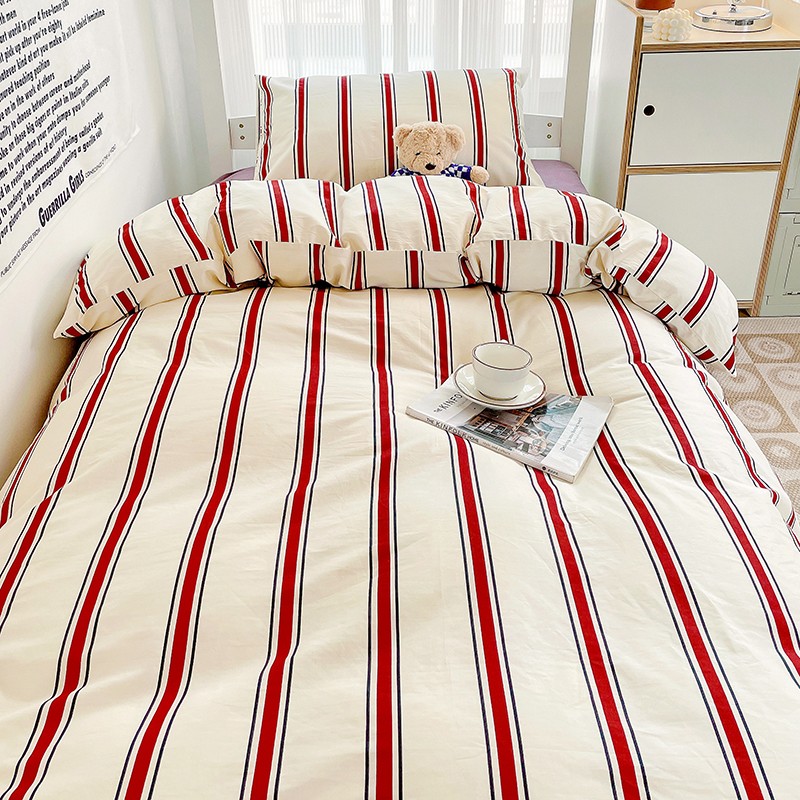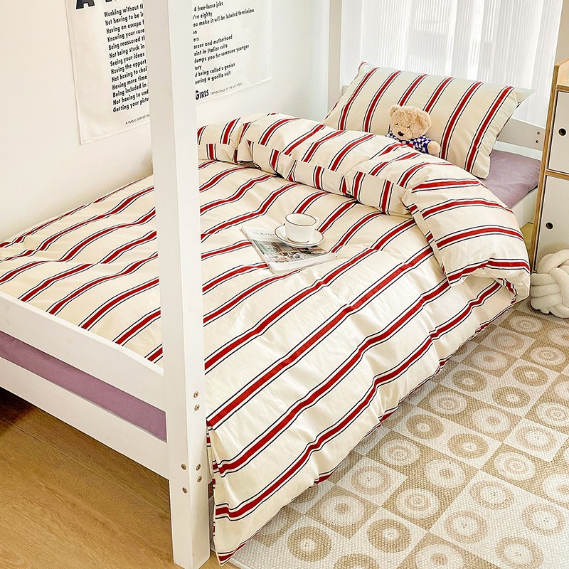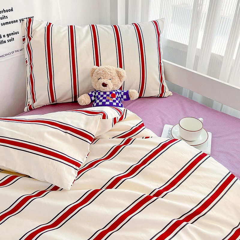 商品名称:昔可 2022新款开学季全棉卡通印花学生三件套 红竖条