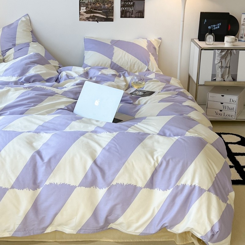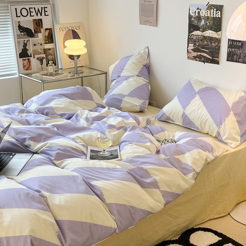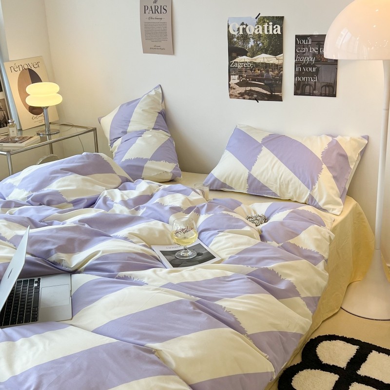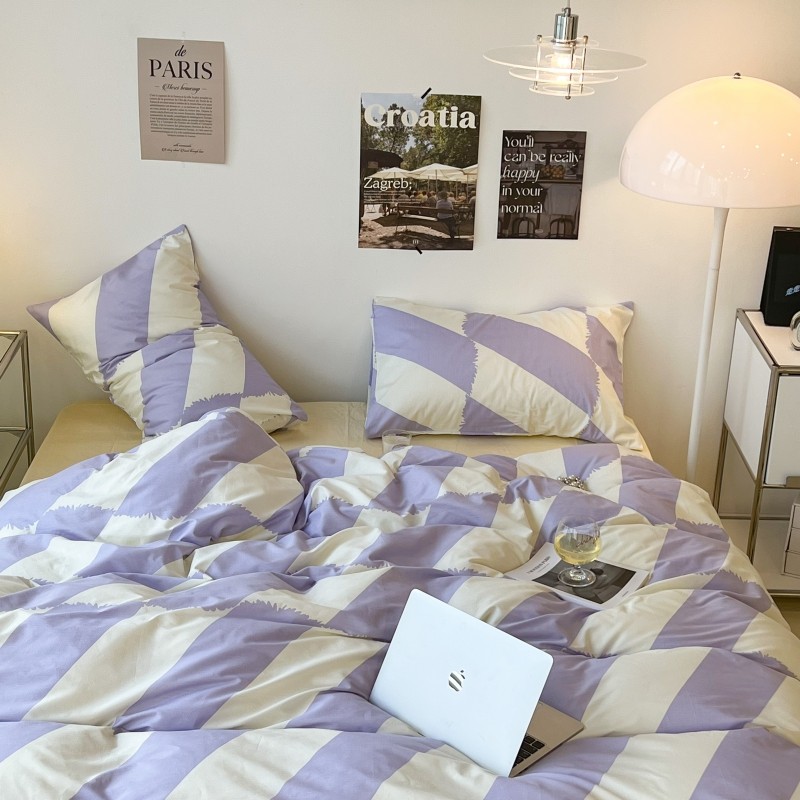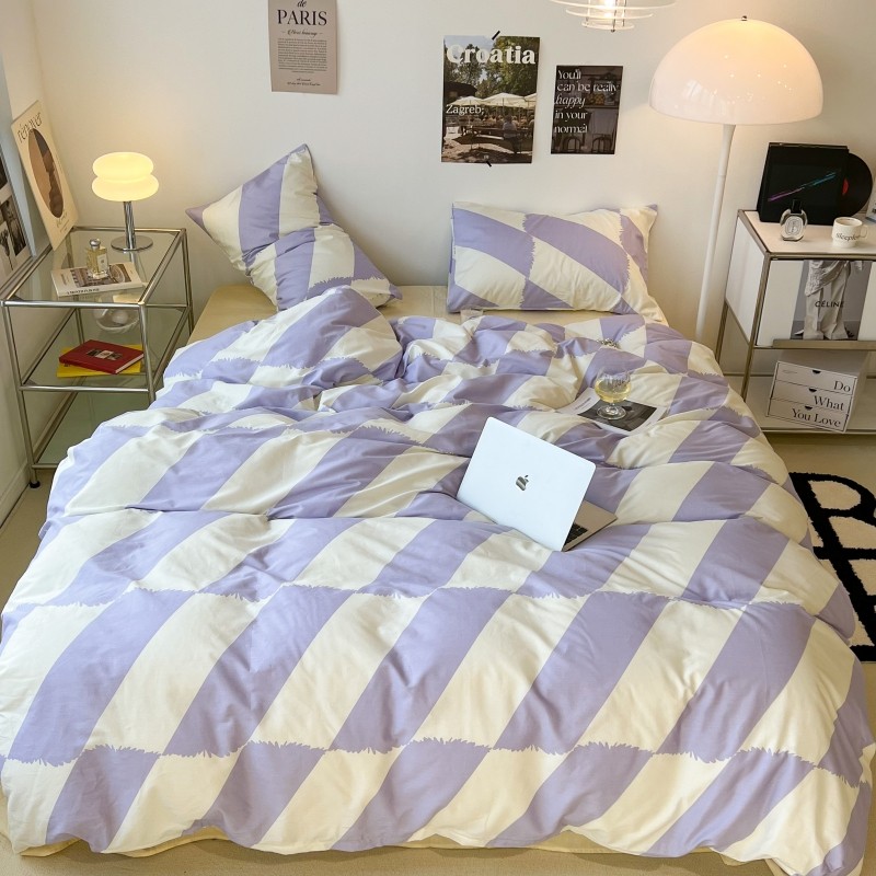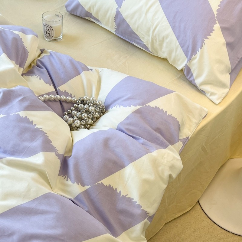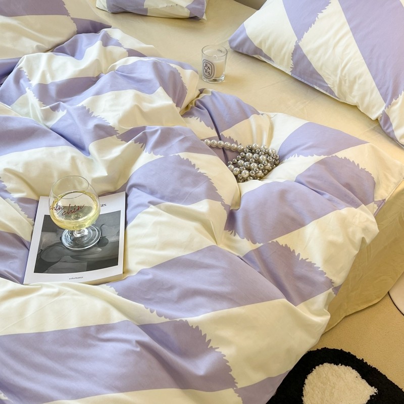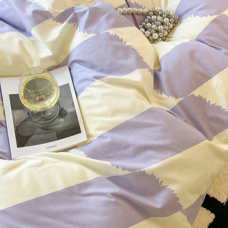 昔可家纺 2022新款简约几何北欧风全棉四件套 布鲁罗曼 紫