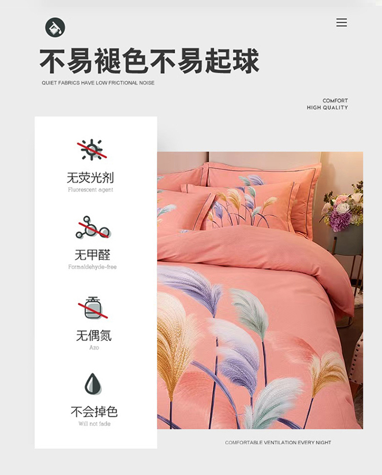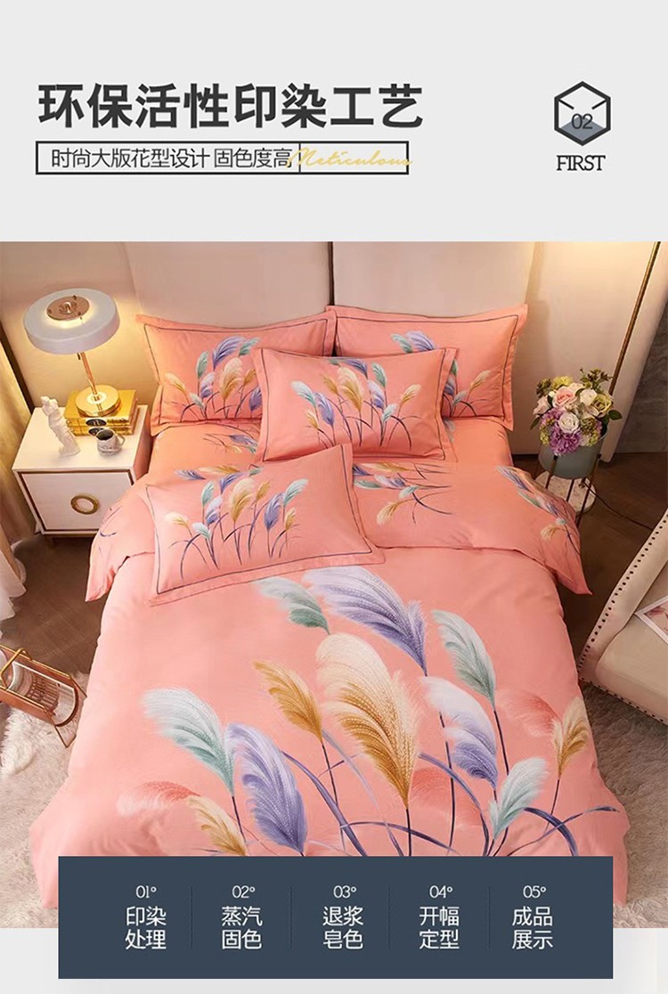 商品名称:金纱玉纺2022新款全棉生态大版磨毛四件套 芳菲年华-粉