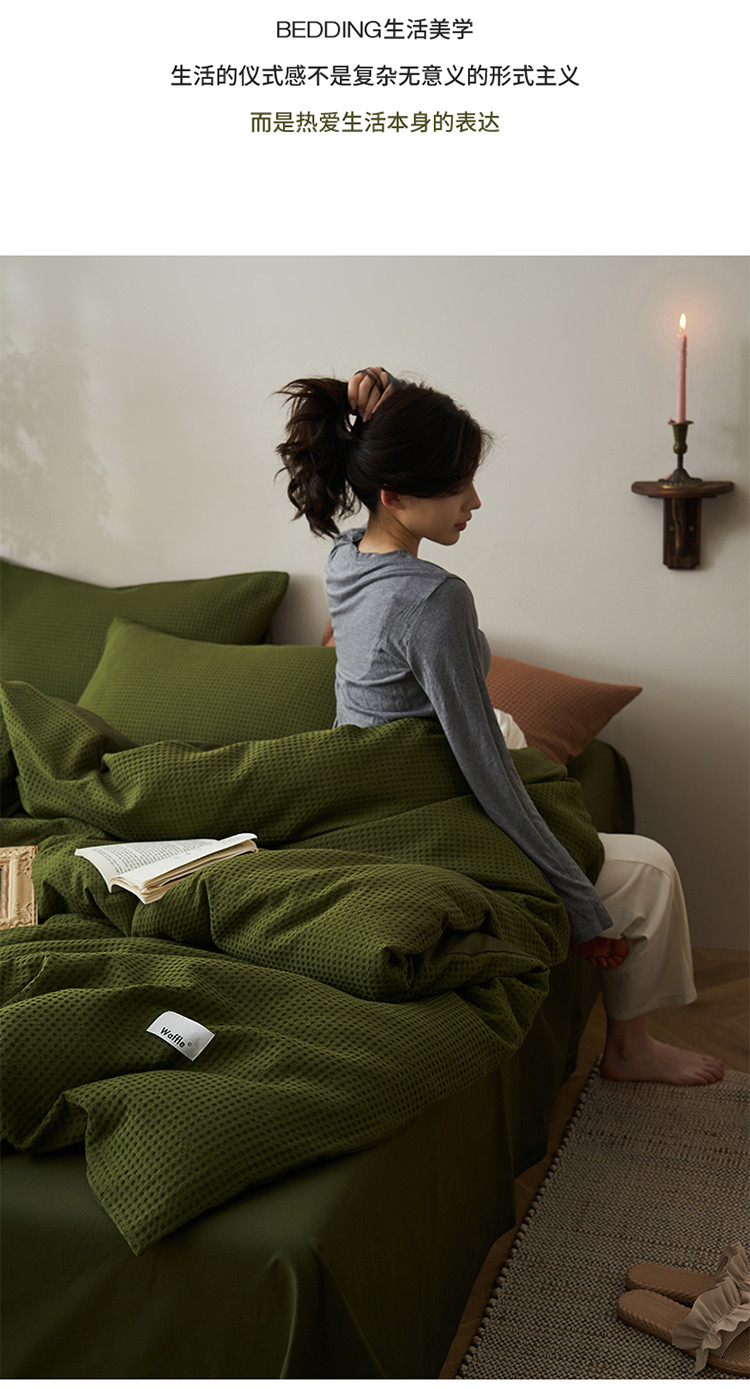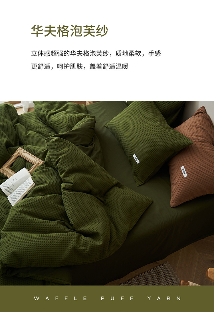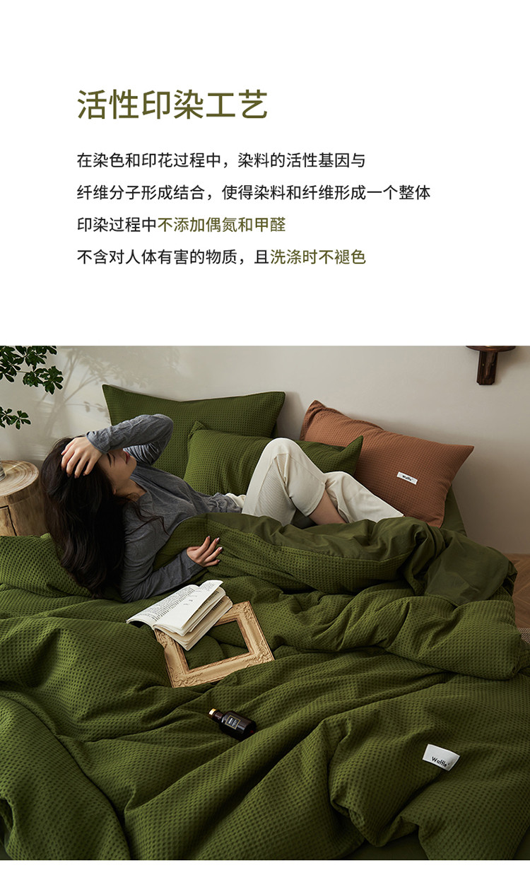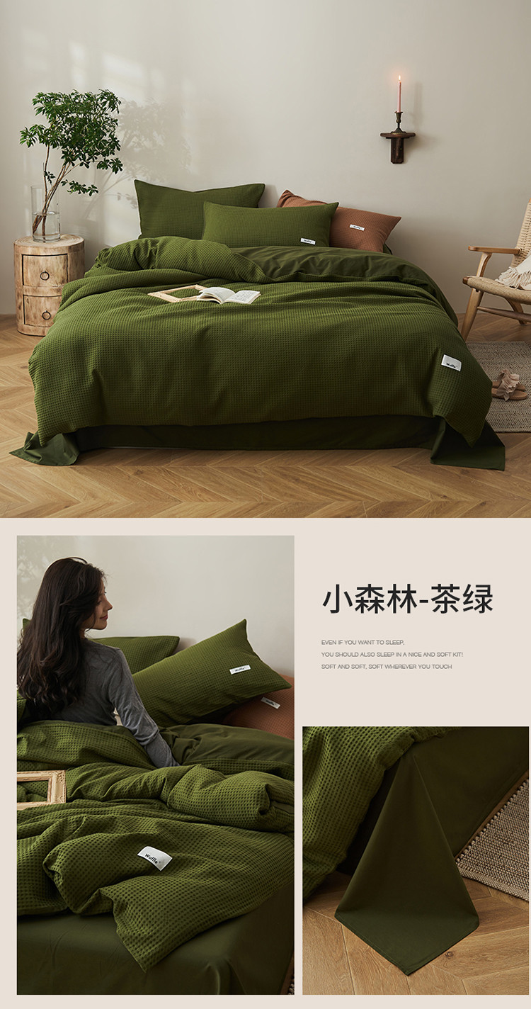 晨曦家纺 2023新款华夫格四季款四件套-小森林系列 小森林-茶绿