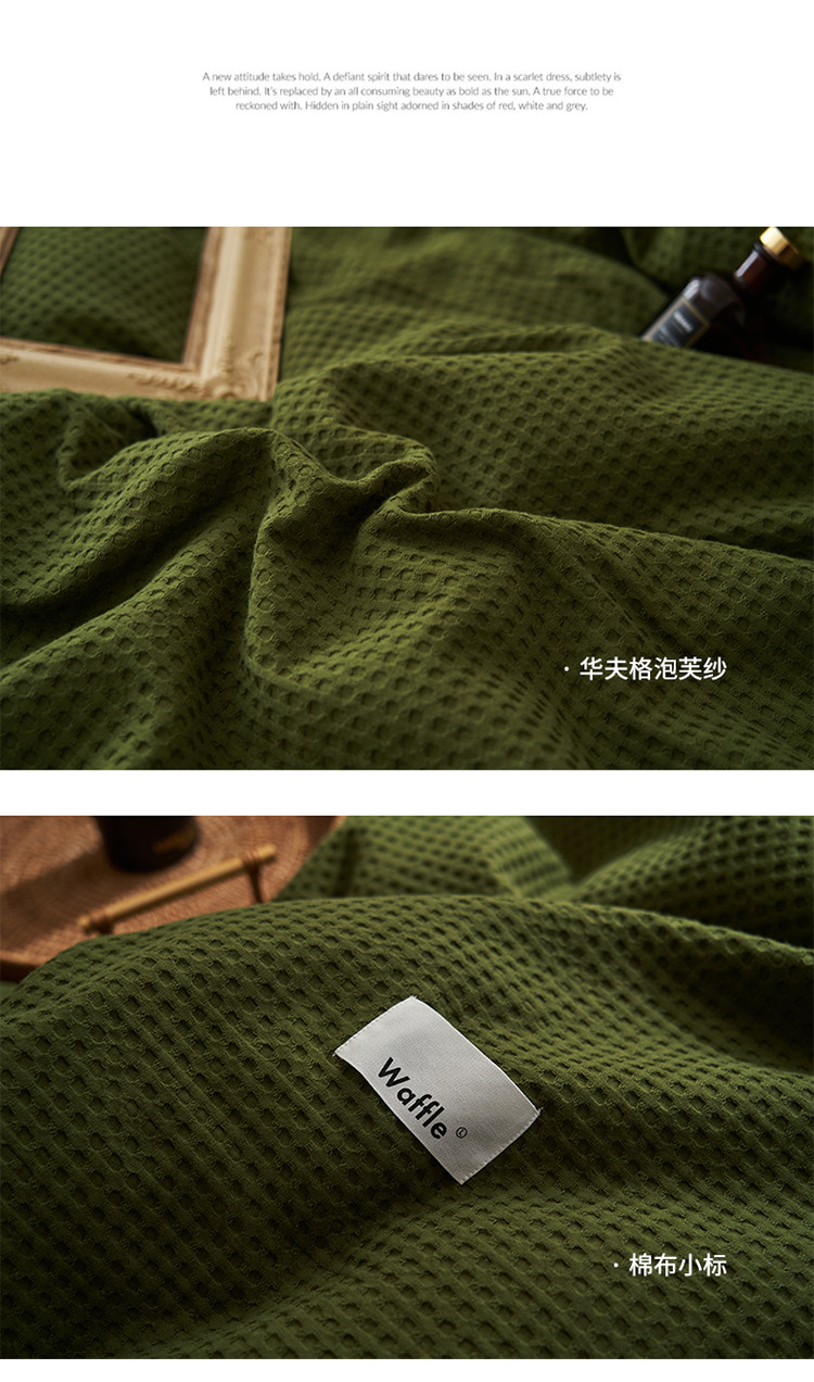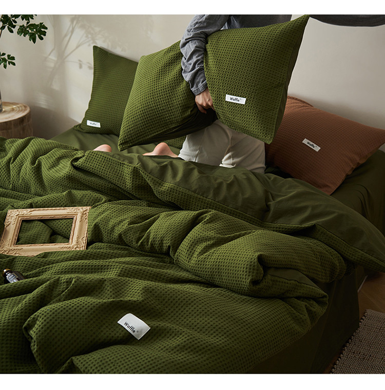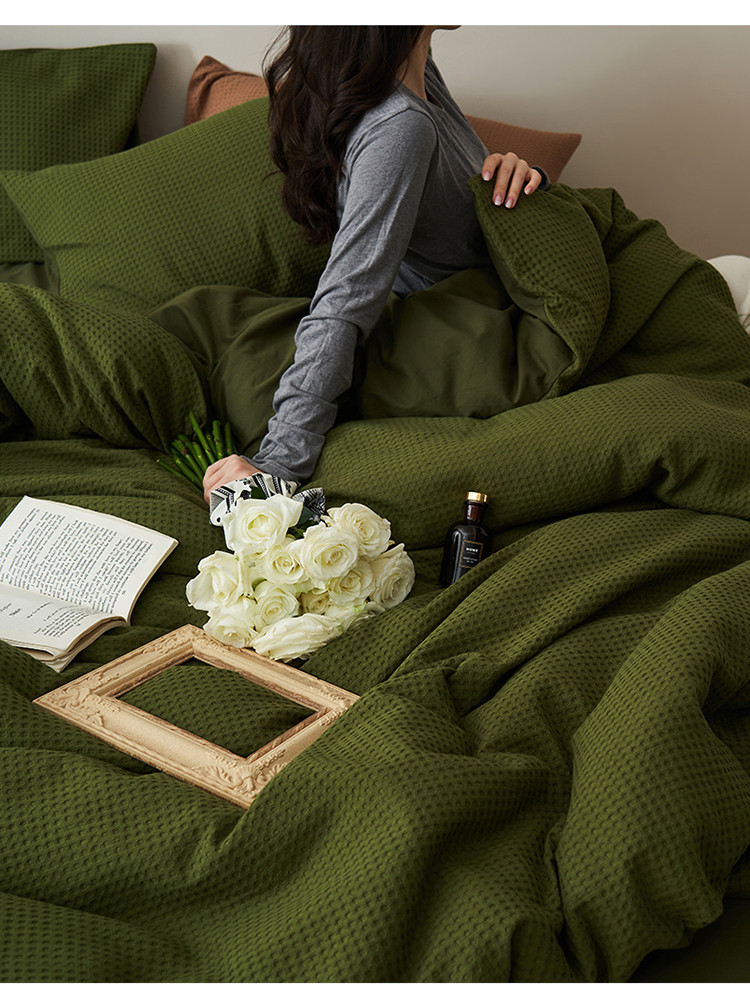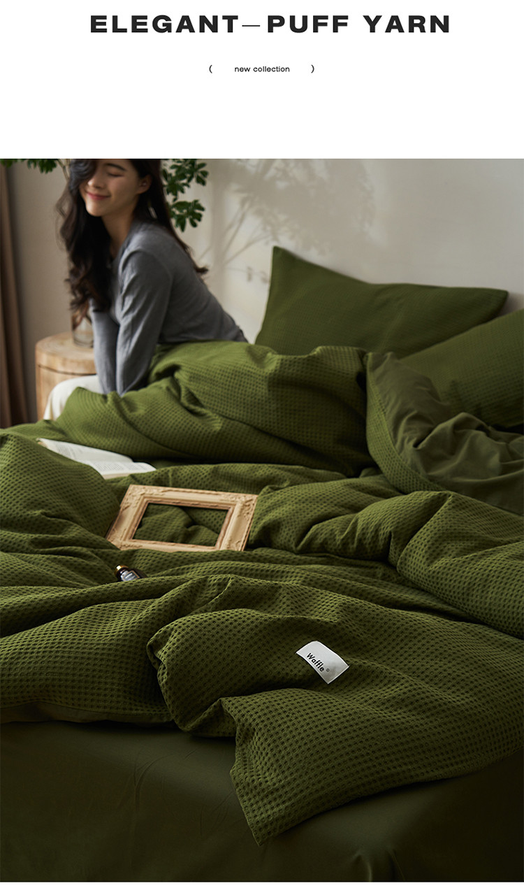 晨曦家纺 2023新款华夫格四季款四件套-小森林系列 小森林-茶绿