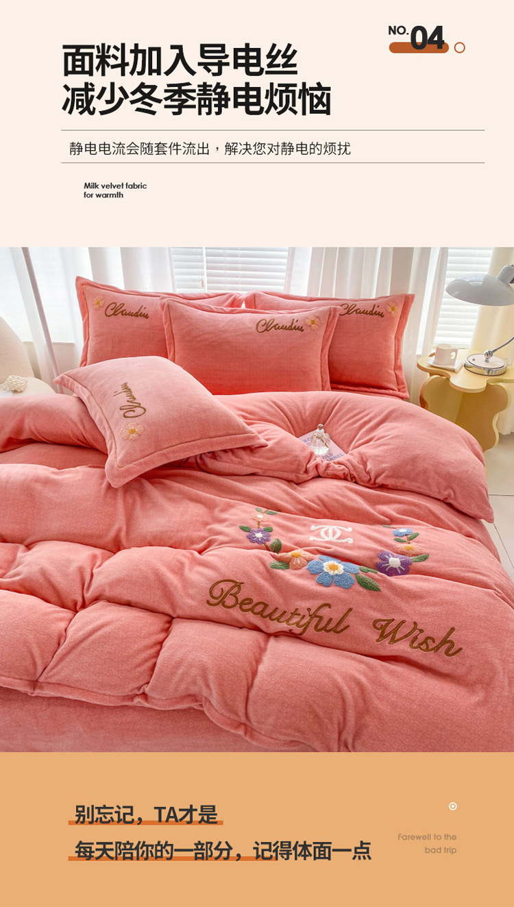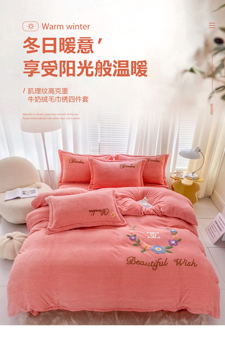(总)云锦2023秋冬新品全棉磨毛绣花四件套缦芯,缦芯粉,缦芯灰,缦芯橘,缦芯蓝,缦芯紫