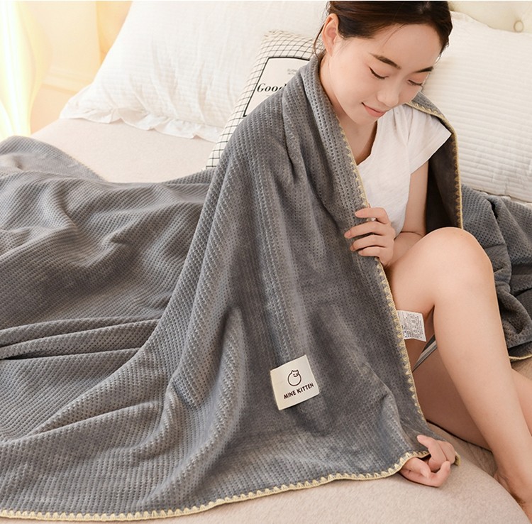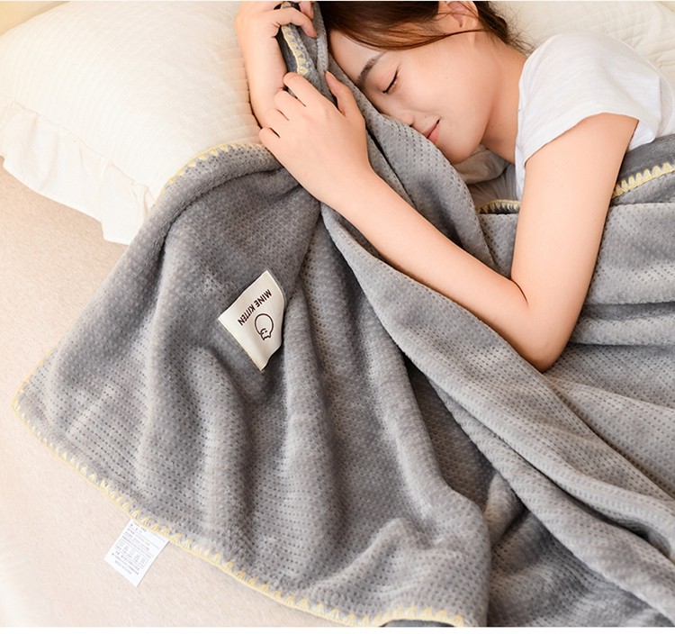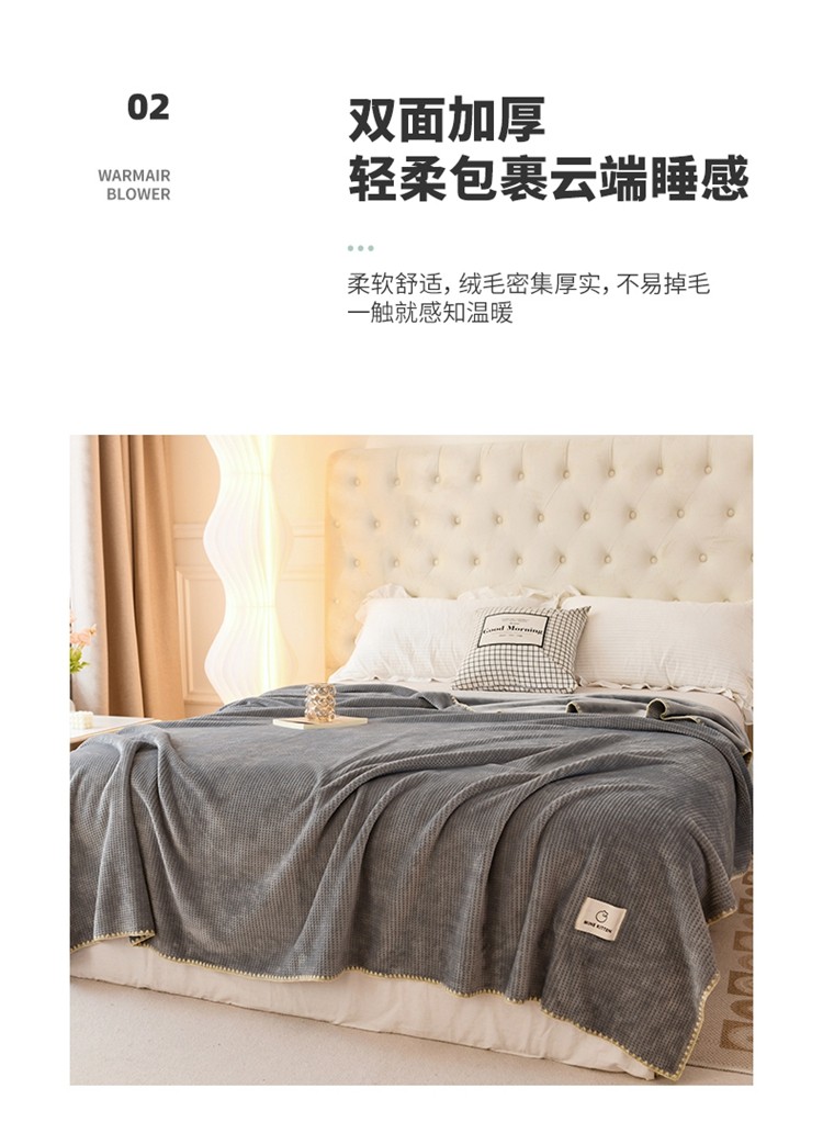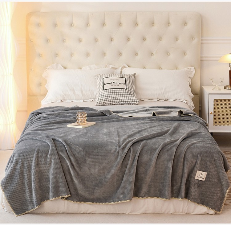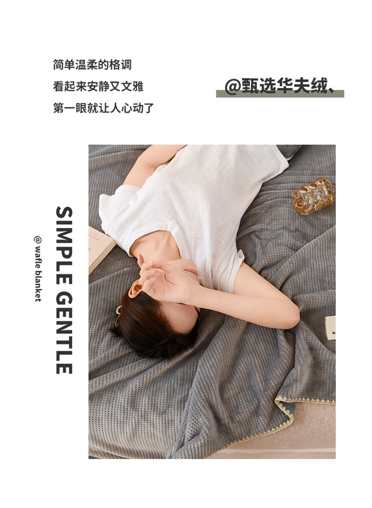 雅萱 2022新款双面加厚华夫格毛毯 灰色