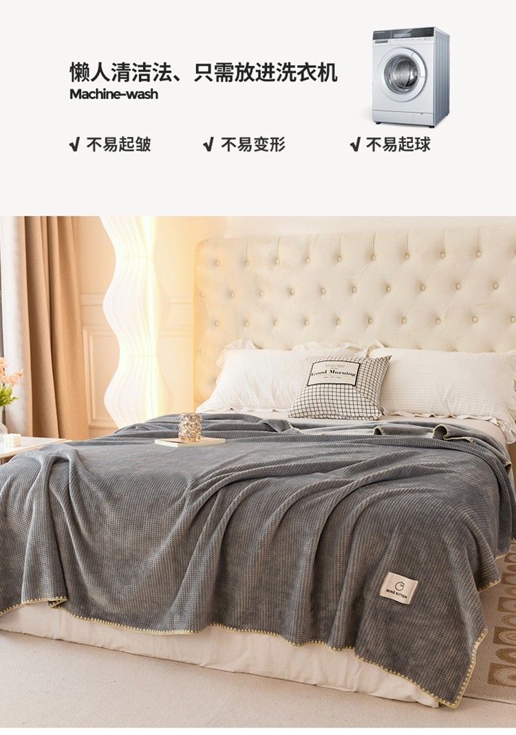 (总)雅萱 2024新款华夫格毛毯,百合绿,豆沙,灰色,焦糖,蓝灰,藕粉