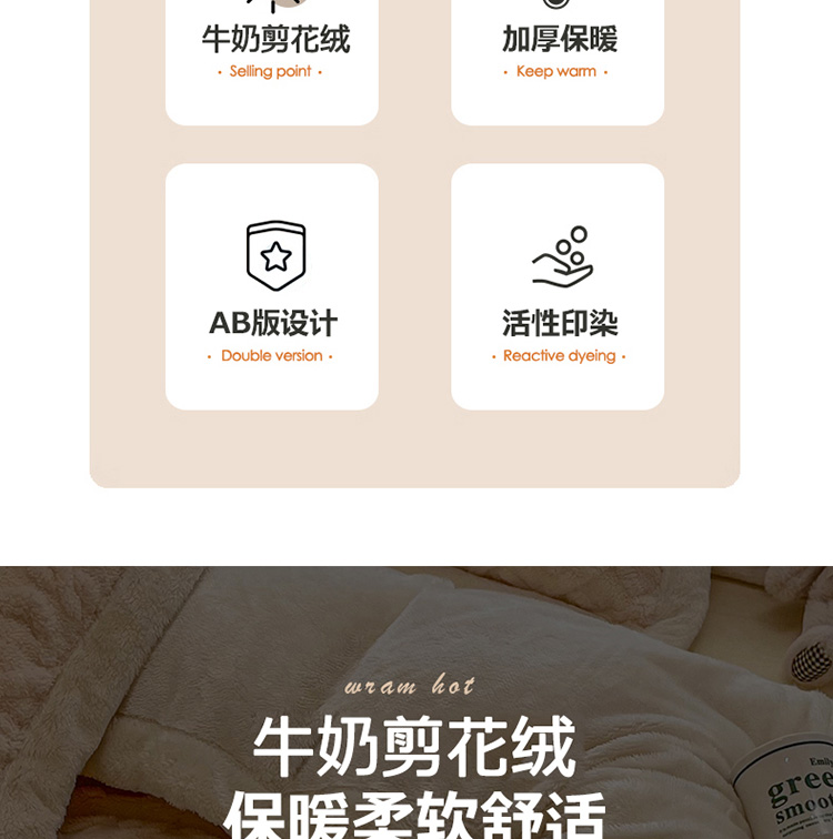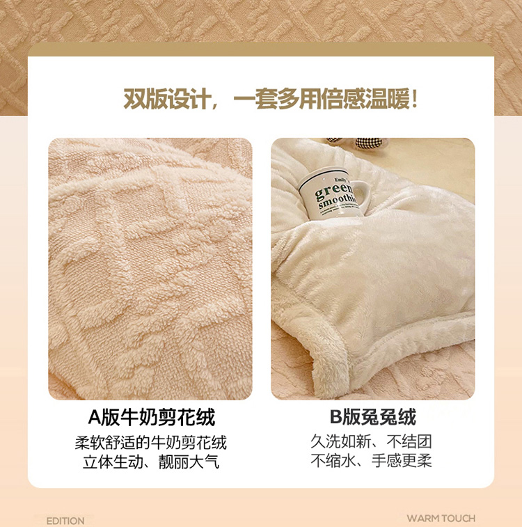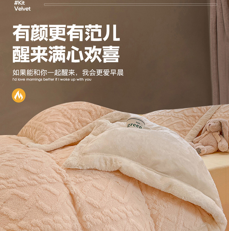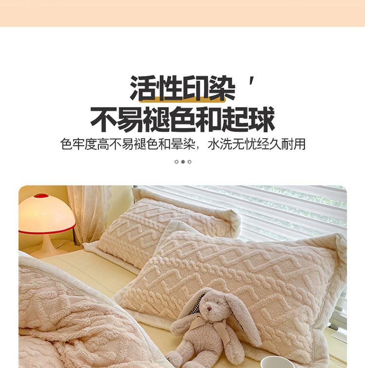 商品名称:琪格格 2022新款剪花绒vs兔兔绒四件套 剪花绒-米杏