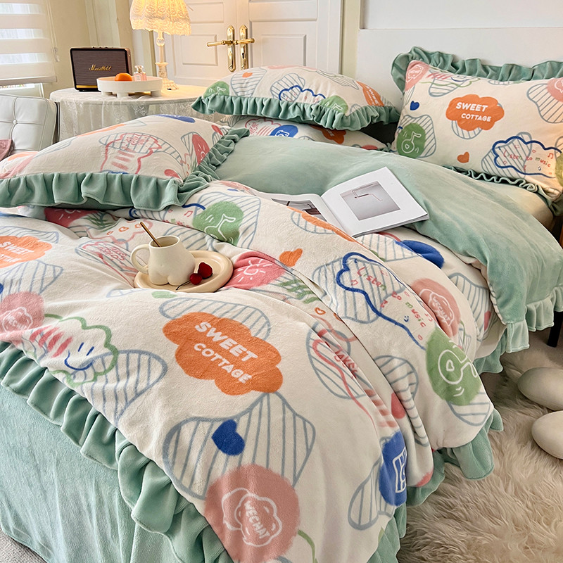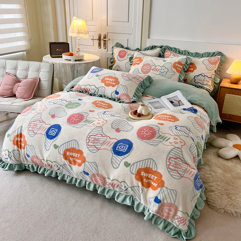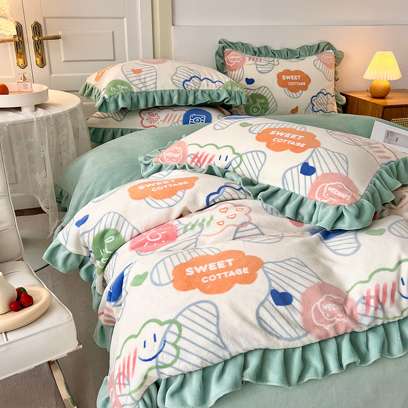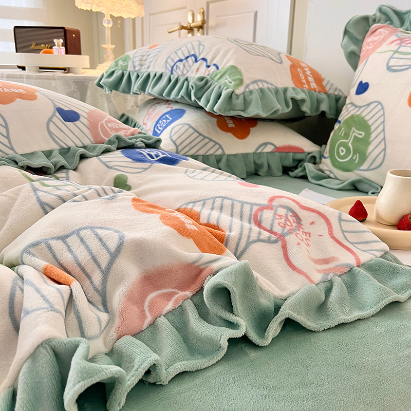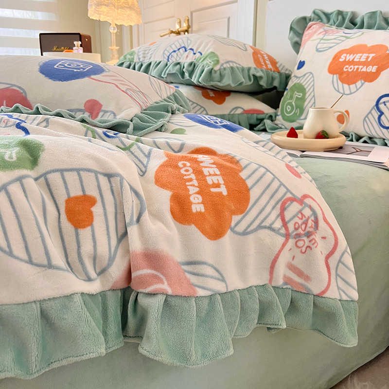 商品名称:维娜斯 2022新款高克重牛奶绒花边四件套 花边-甜蜜小屋