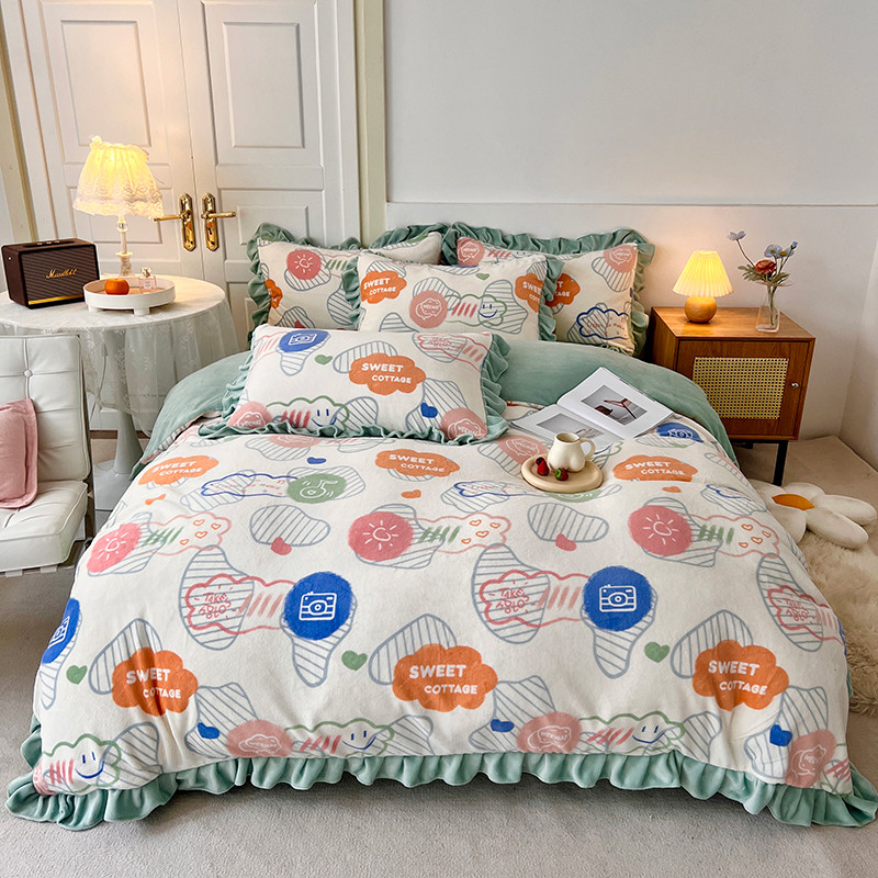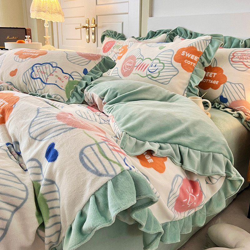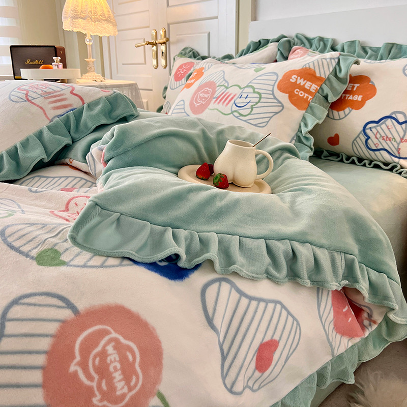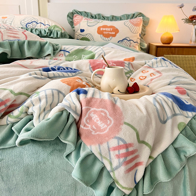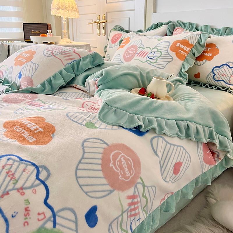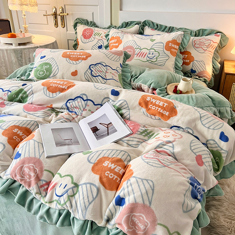 商品名称:维娜斯 2022新款高克重牛奶绒花边四件套 花边-甜蜜小屋