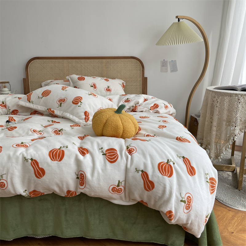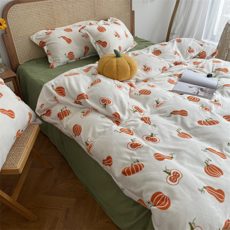 源启生活 2022新款230g全消光高克重牛奶绒四件套 小南瓜
