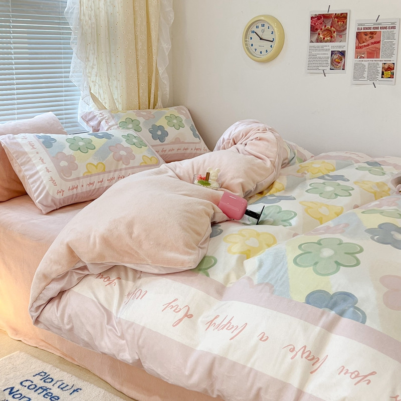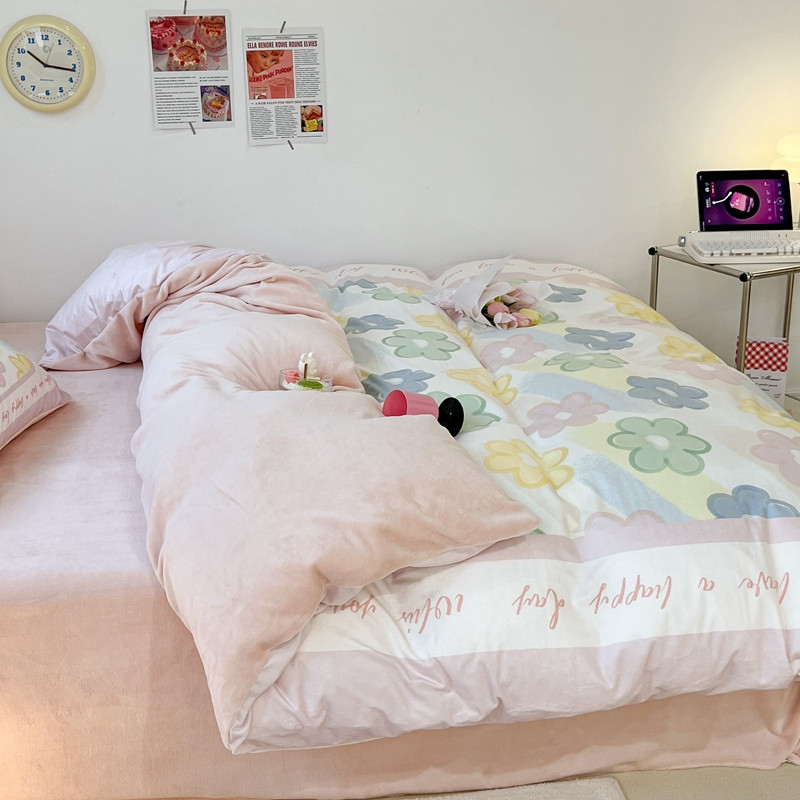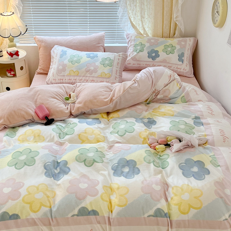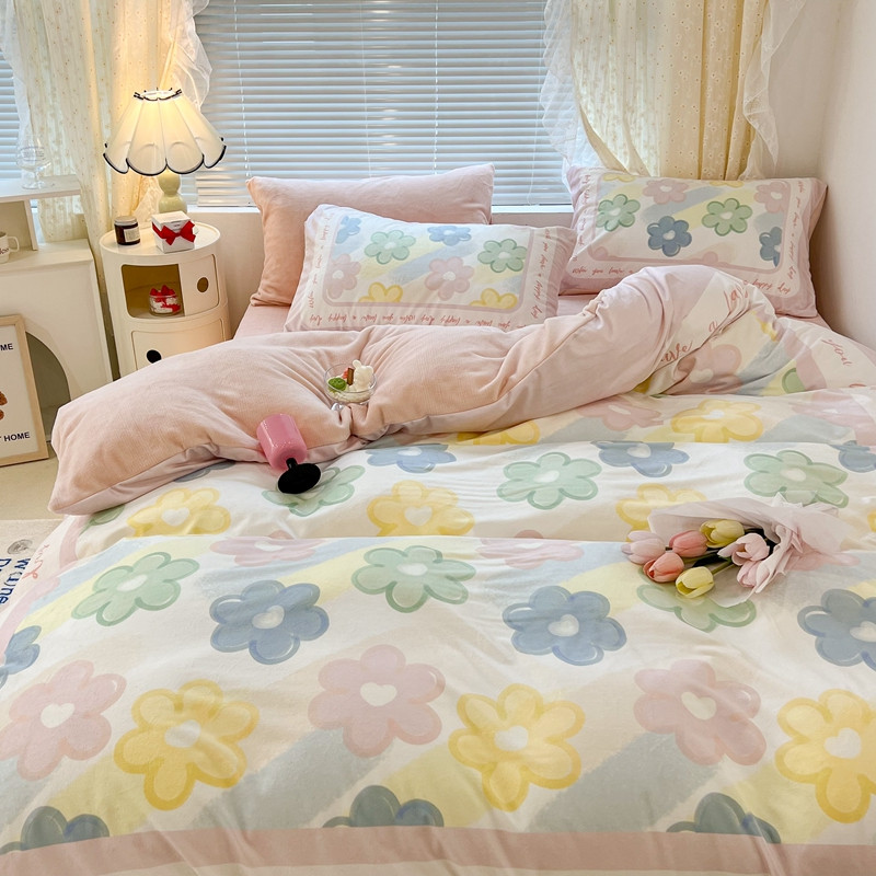 昔可 2022新款大版数码印花牛奶绒四件套 多彩小花