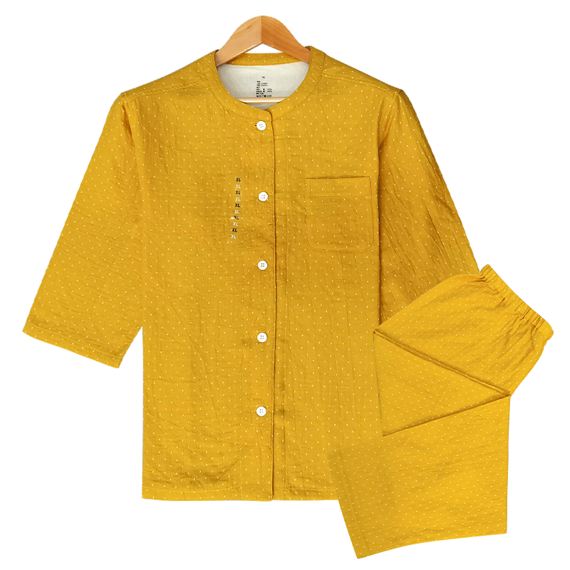 商品名称:皇寝世家 2023新款立领纯棉双层纱家居服套装 811女-星空黄