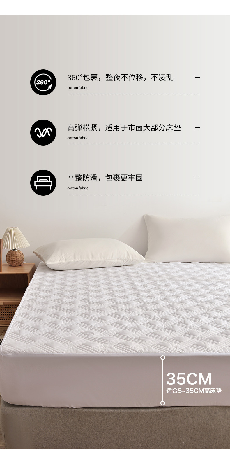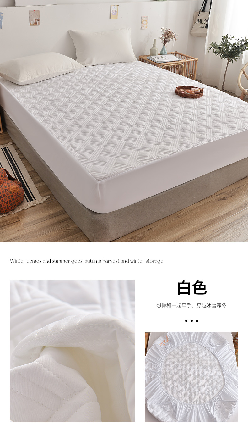 商品名称:梦柏 2023新款13372全棉斜纹夹棉床笠 白色