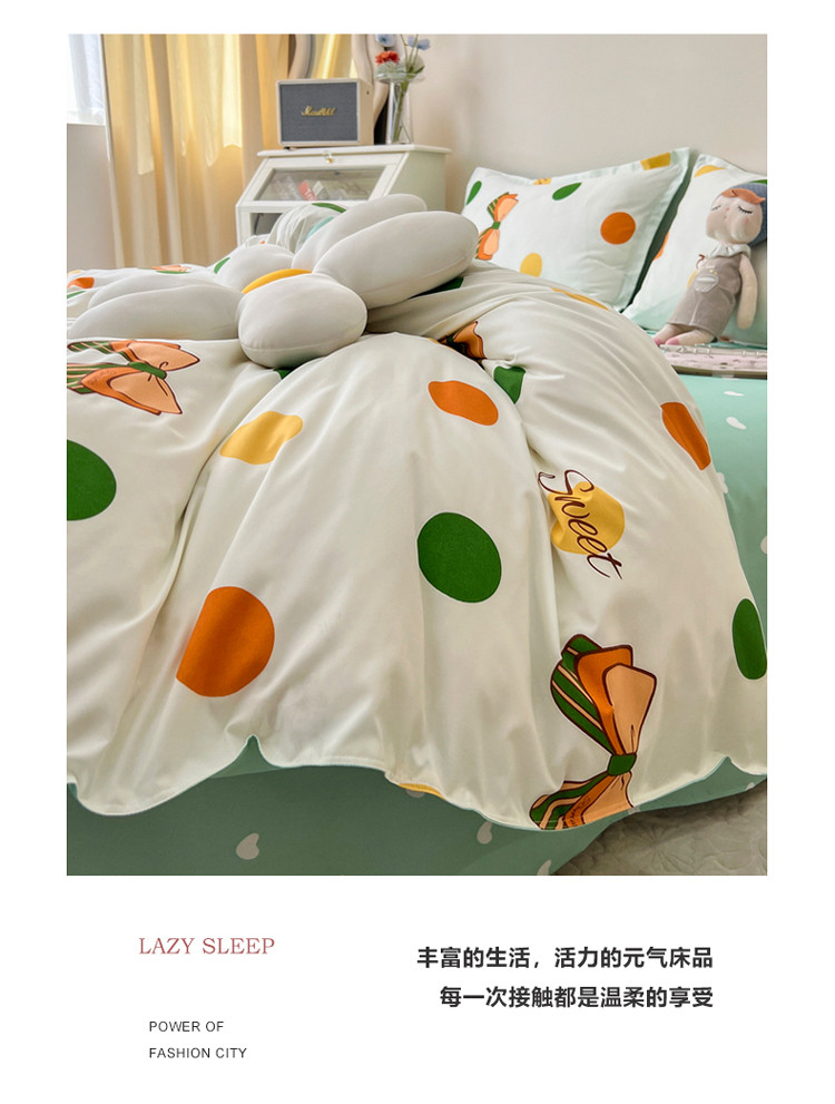 宏源 2022新款芦荟棉亲肤印花四件套10月新花型 波点蝴蝶结