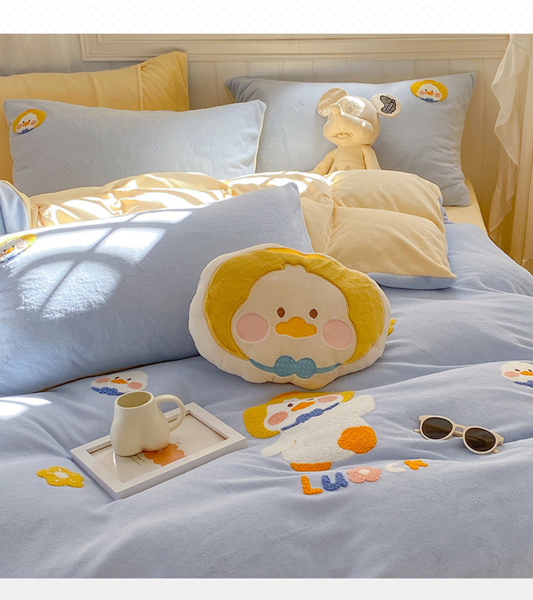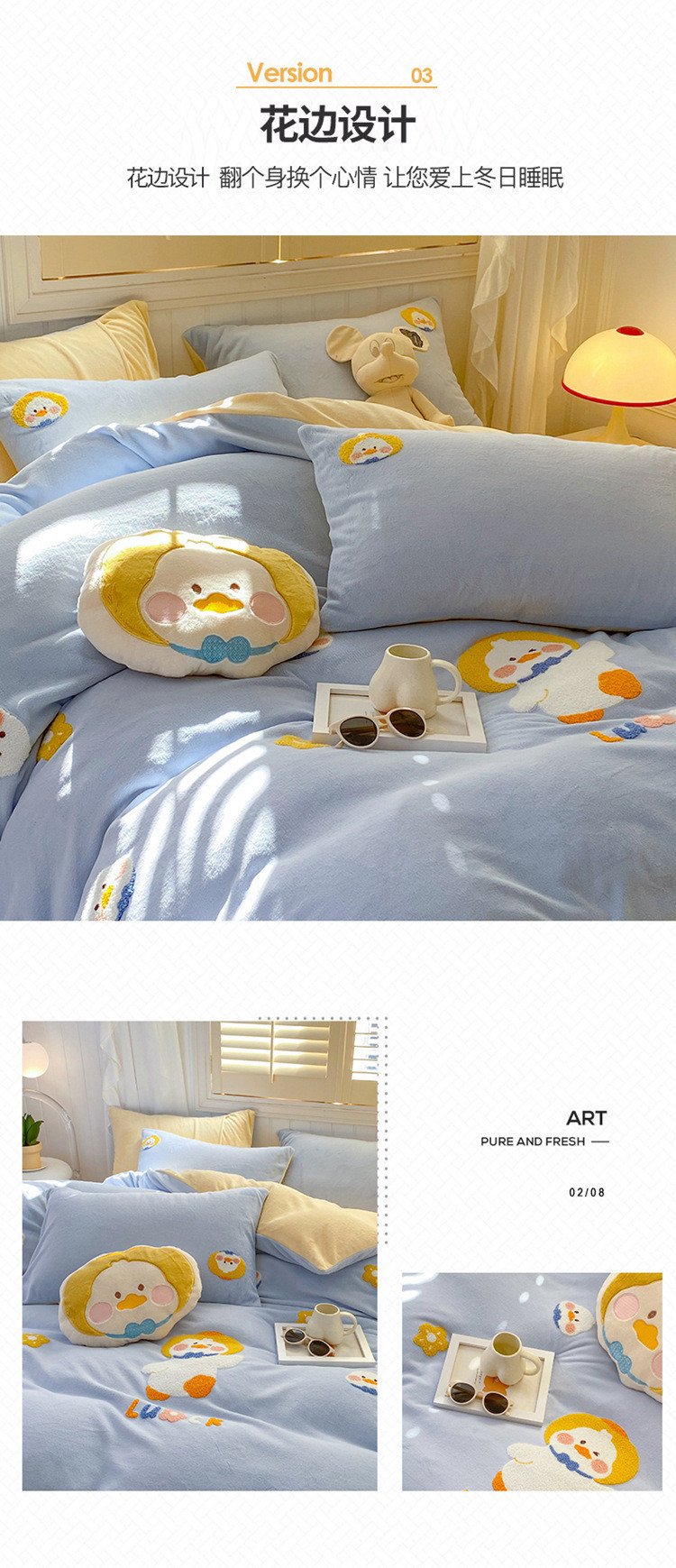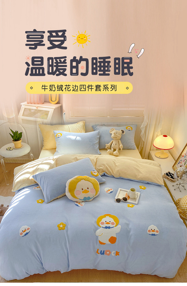 眠屿 2022新款毛巾绣牛奶绒四件套可爱鸭鸭