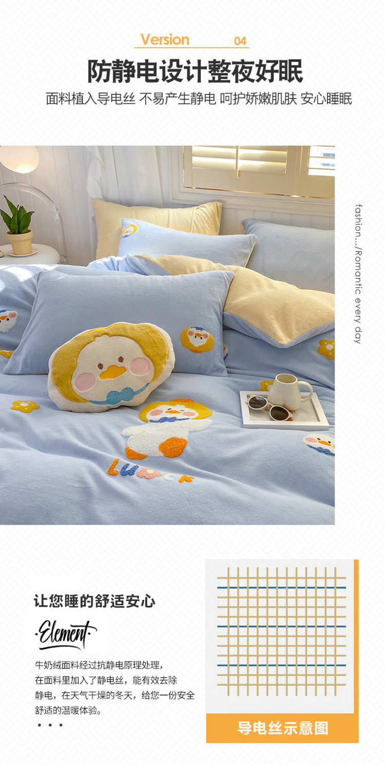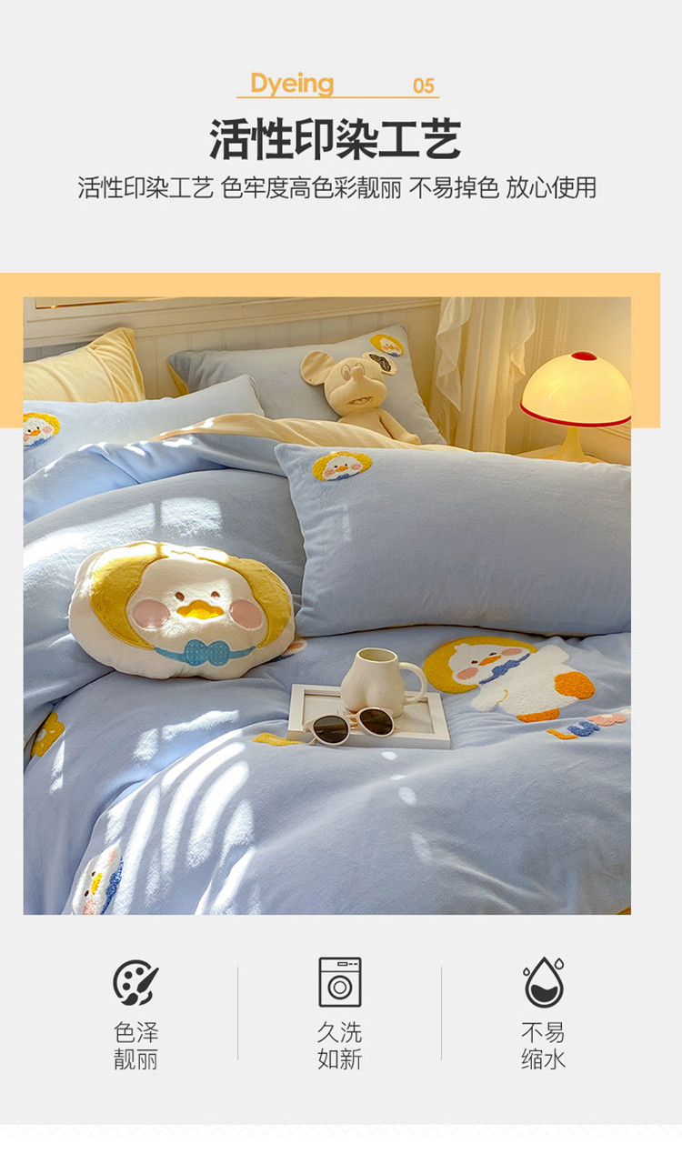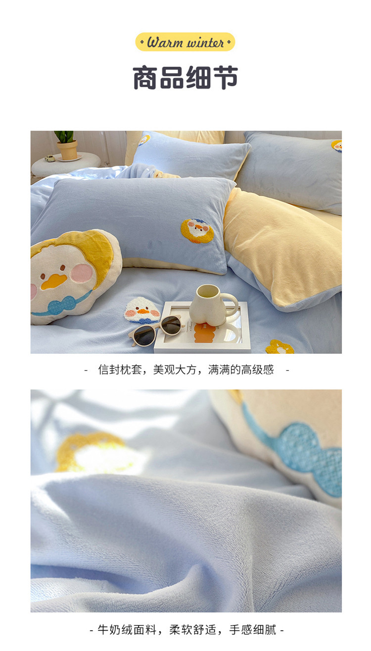 商品名称:眠屿 2022新款毛巾绣牛奶绒四件套可爱鸭鸭