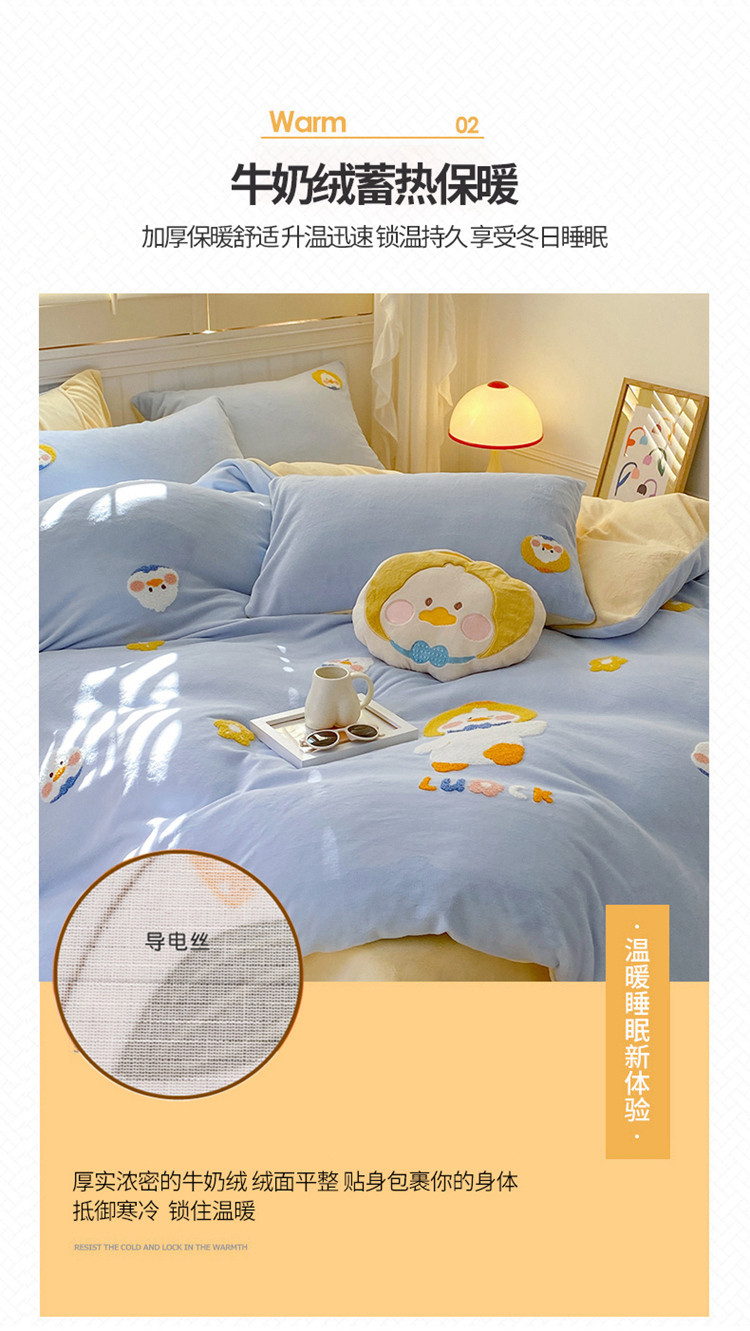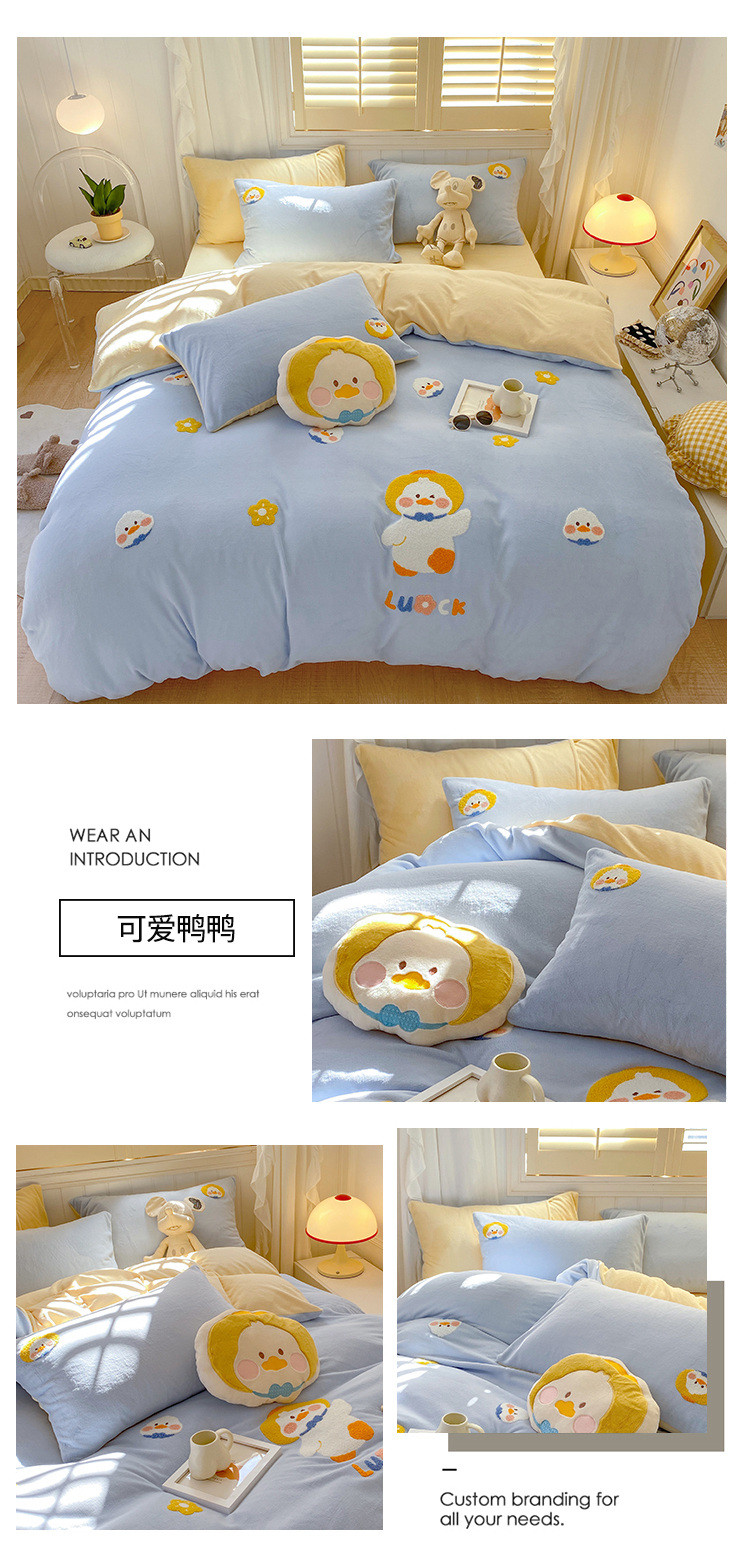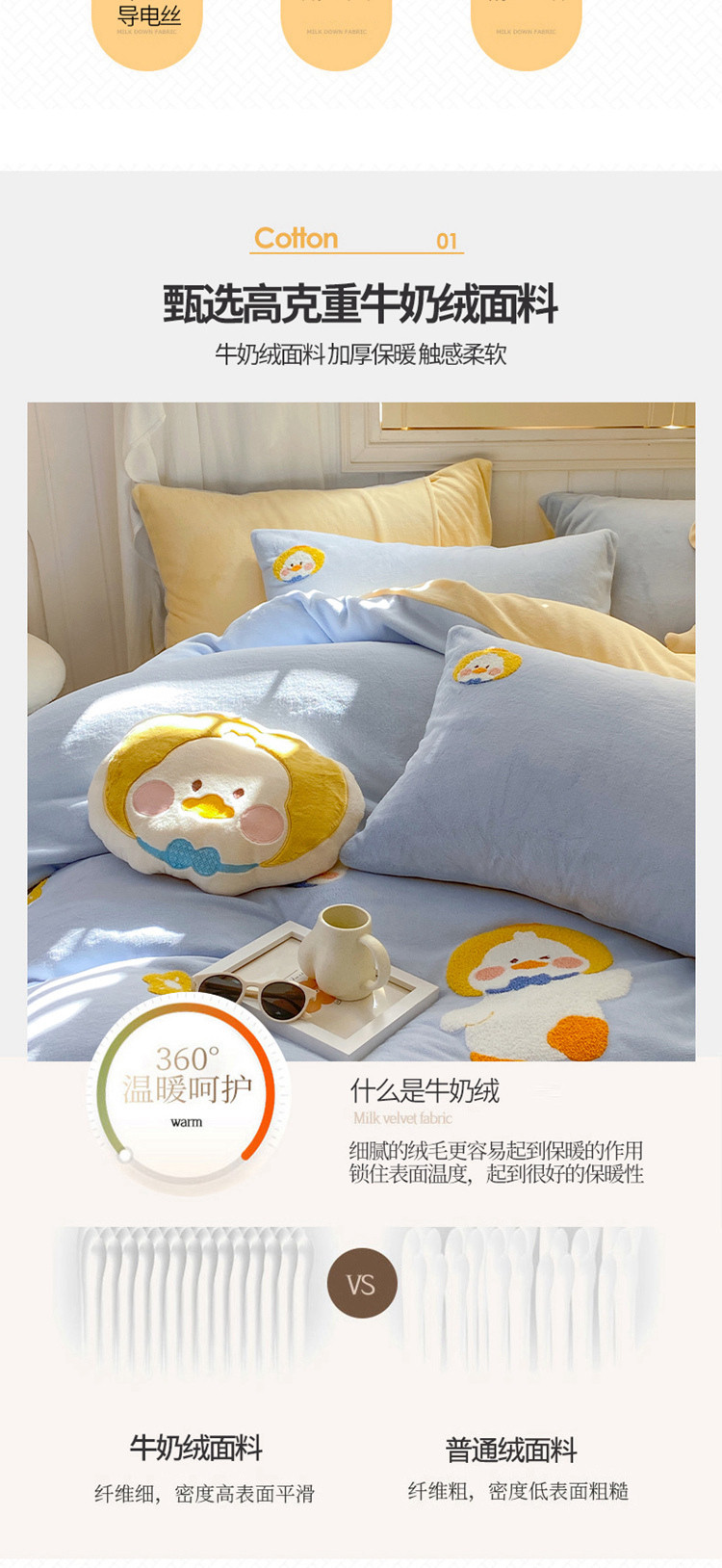 商品名称:眠屿 2022新款毛巾绣牛奶绒四件套可爱鸭鸭