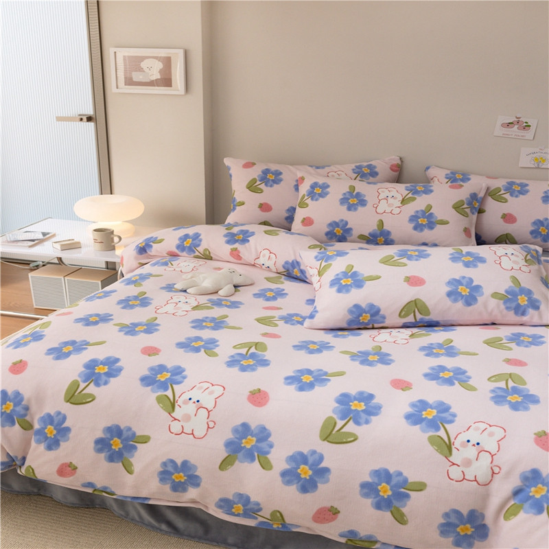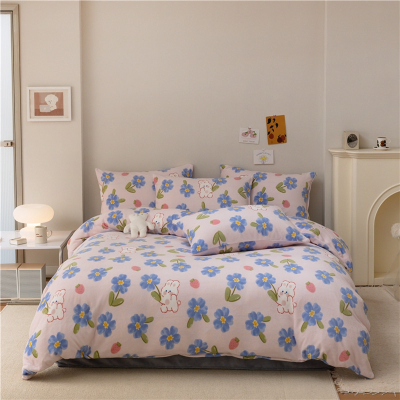 棉眠 2022新款卡通牛奶绒四件套 洛可可-粉