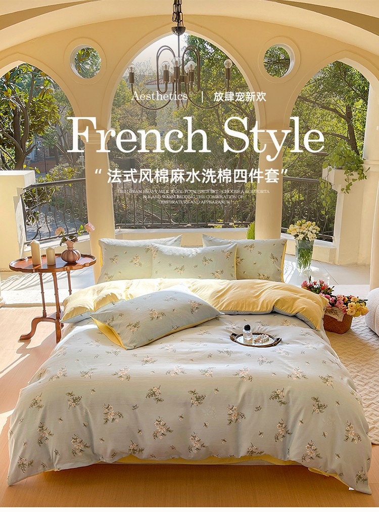 (总)卢赛尔 2023新款直播爆款法式风水洗麻双层纱四件套