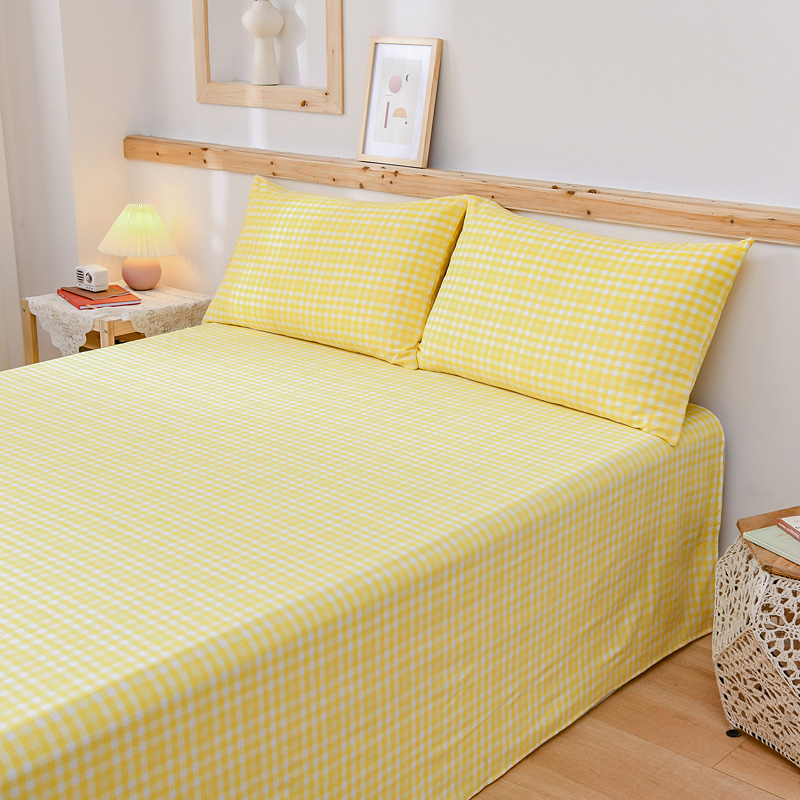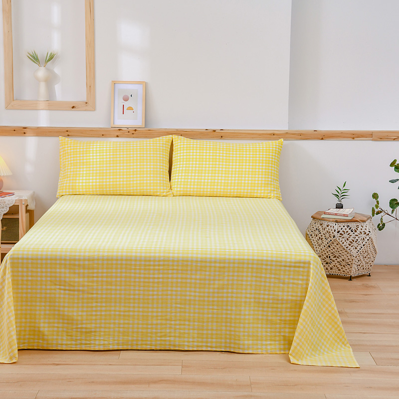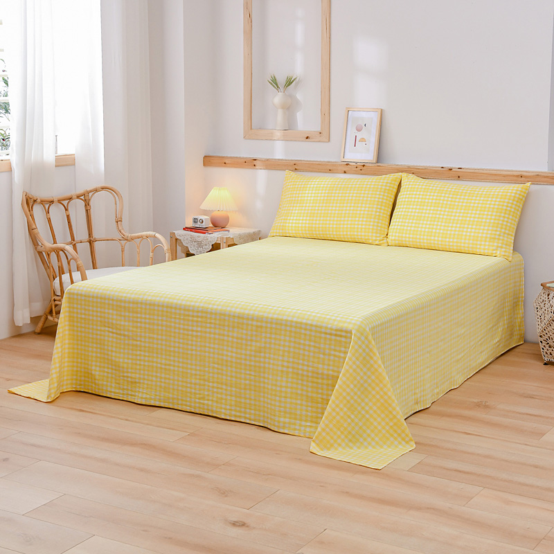 商品名称:恋人优选 2023新款纯棉色织床单 彩虹黄小格