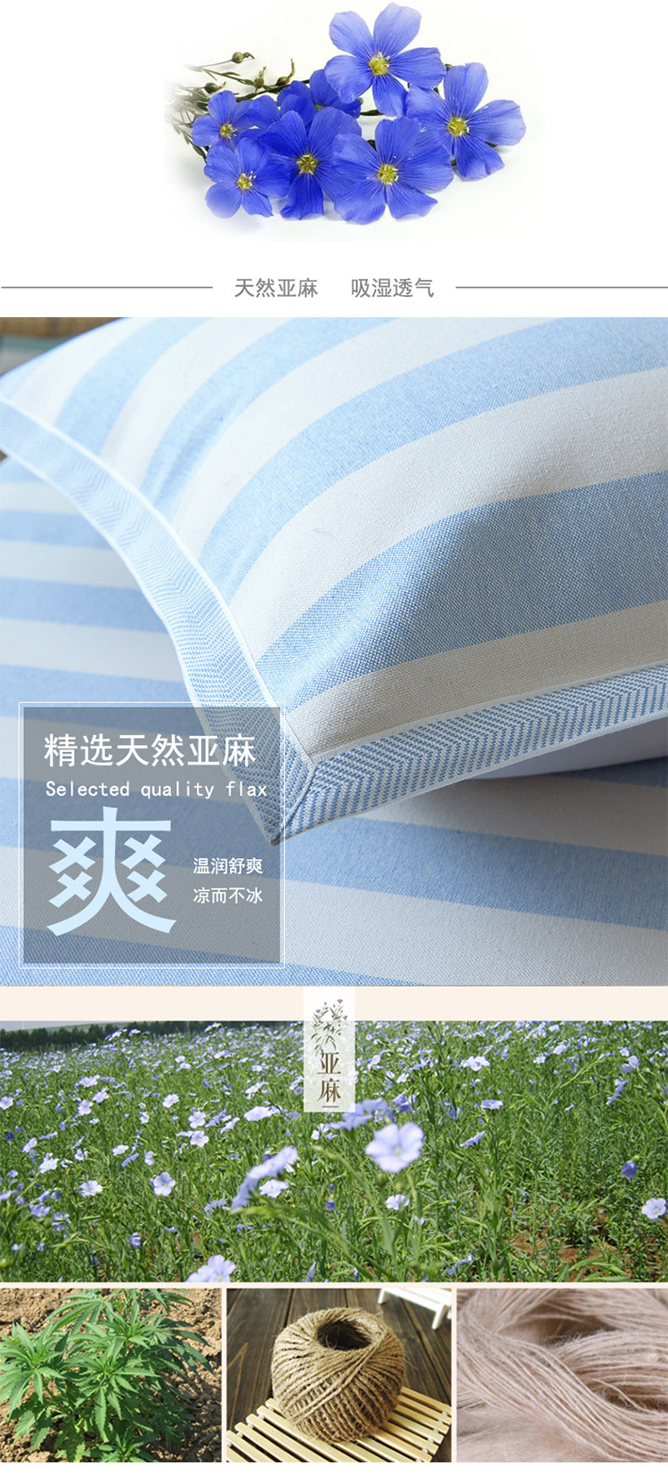 商品名称:麻依 2023新款亚麻细纱凉席三件套 极光 蓝