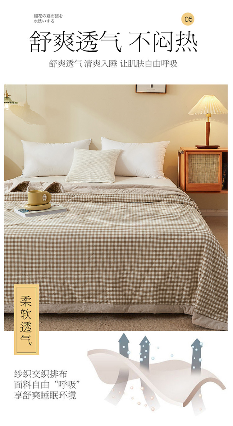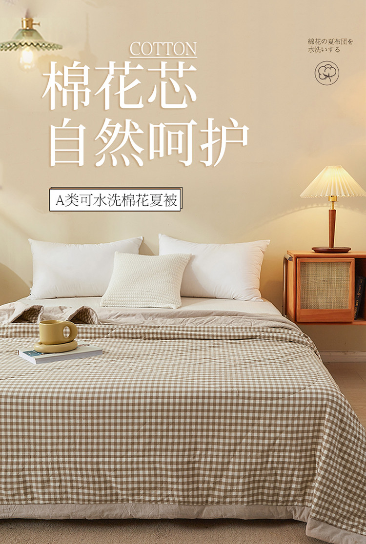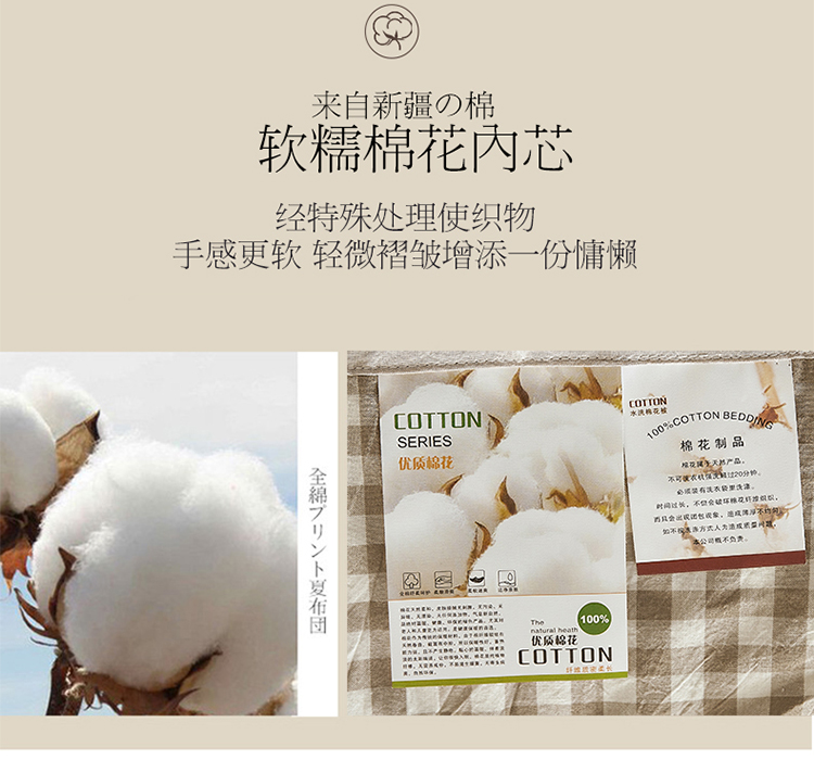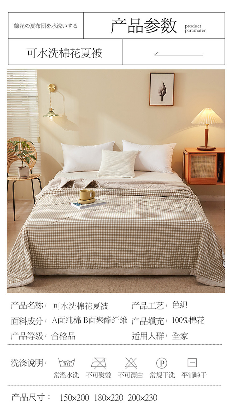商品名称:悠米悠家 2025新款新疆棉花被棉花夏被水洗棉夏凉被 咖小格