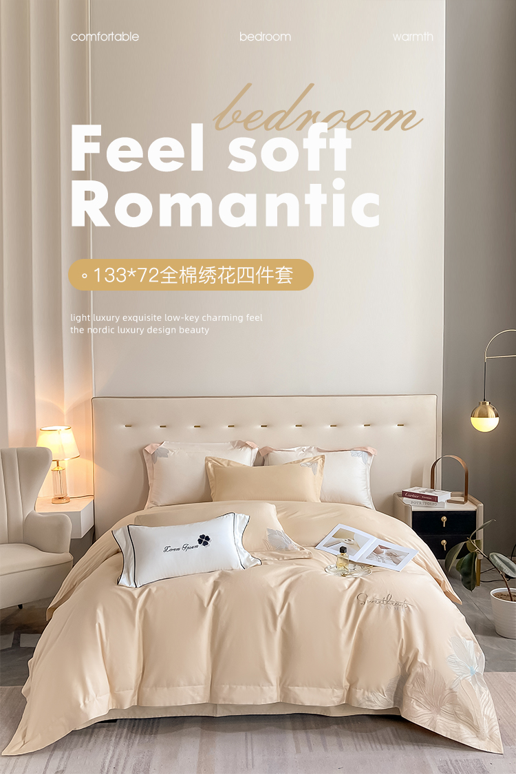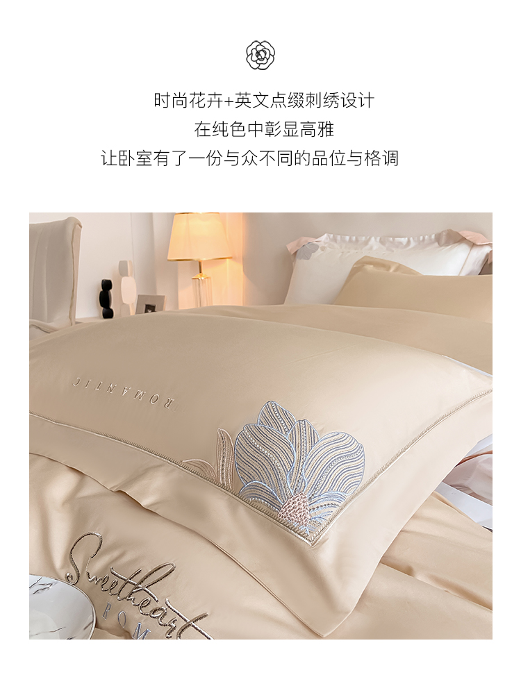 (总)理想家家纺 2025新款纯棉轻奢刺绣四件套-小秘密系列场景二,小秘密 粉,小秘密 黄,小秘密 蓝