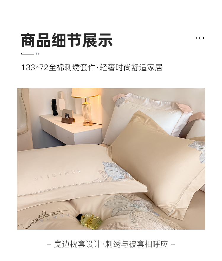 (总)理想家家纺 2025新款纯棉轻奢刺绣四件套--心愿系列场景二,心愿粉,心愿红,心愿黄,心愿蓝