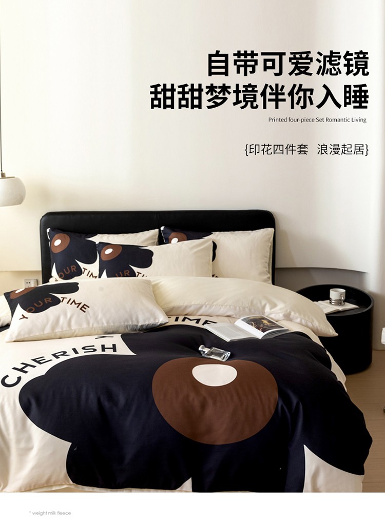 (总)色鬼布艺高端家居主号 2025新款潮牌数码印花牛奶绒四件套,爱心满满,白香,黑白V,黑色爱心,花千树,景年,咖老花,绿色花朵,晴末,条纹女孩,小白熊,小黑熊,英伦,英伦熊,枝繁叶茂