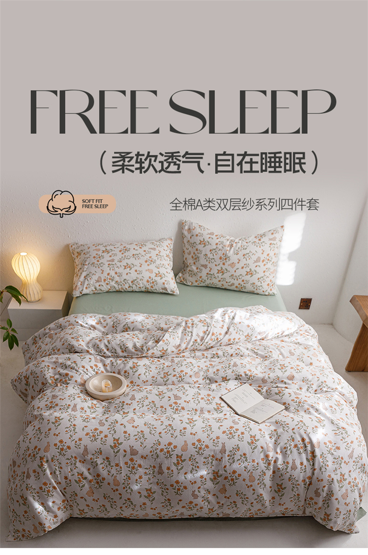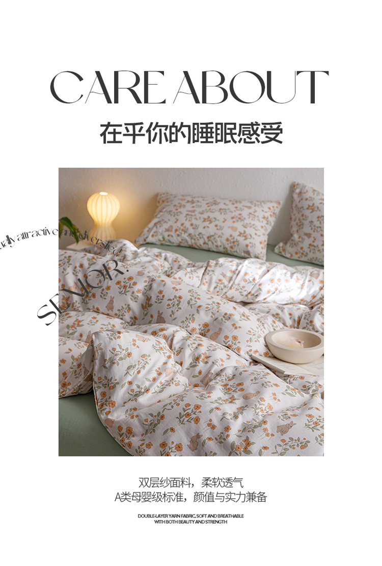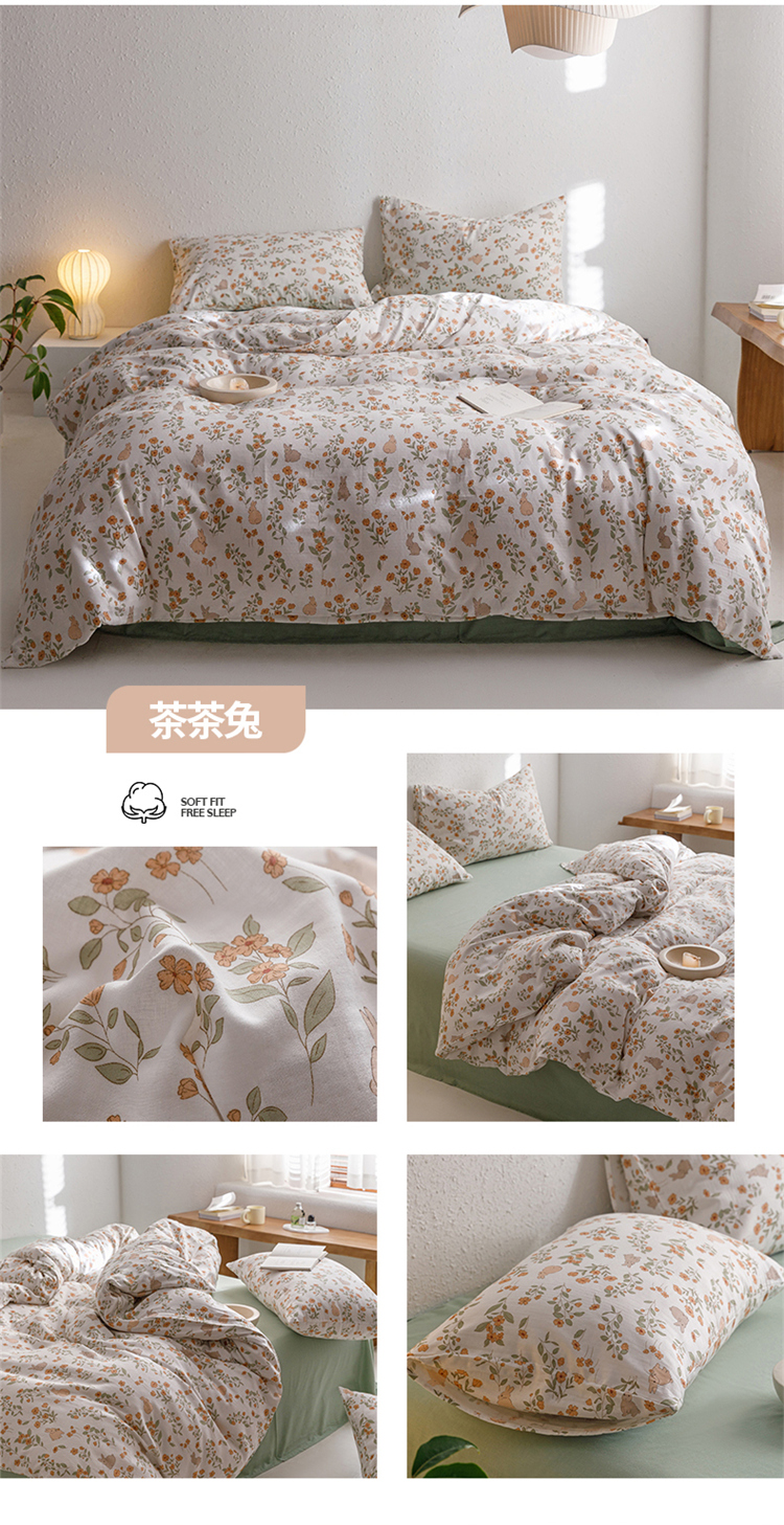 当前位置: 91家纺网 > 商品网购 > 床品套件 > 四件套 > 全棉普通四件套 > 窝米2023新款全棉A类双层纱系列四件套 茶茶兔