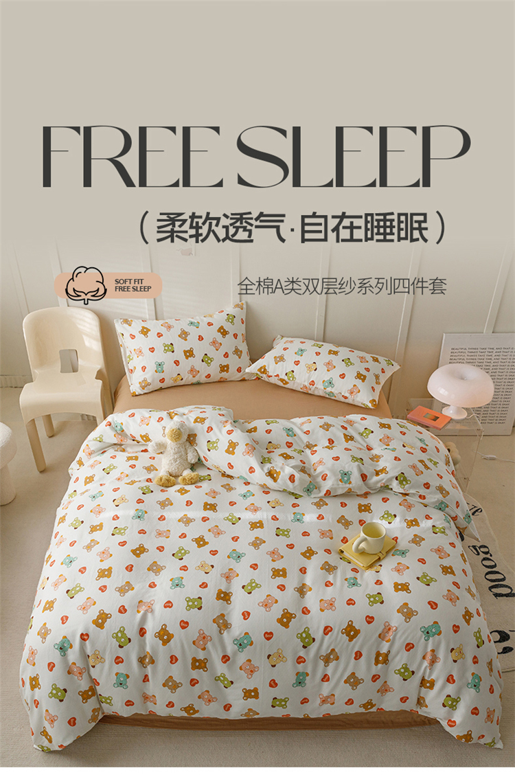 当前位置: 91家纺网 > 商品网购 > 床品套件 > 四件套 > 全棉普通四件套 > 窝米 2023新款全棉A类双层纱系列四件套 珍妮