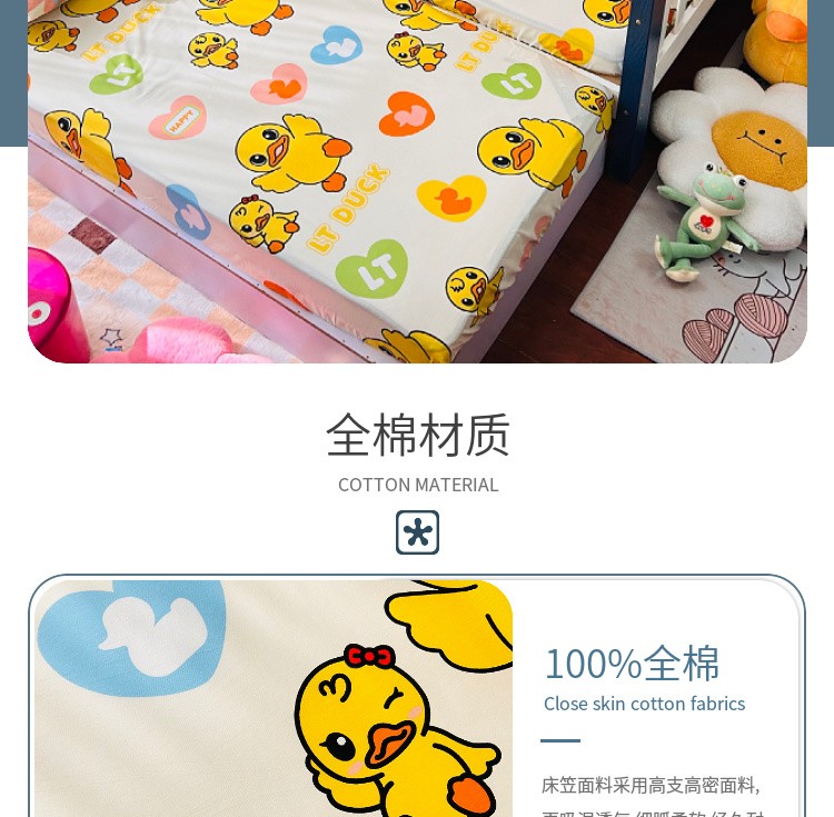 商品名称:(总)小虾米 2023新款上下铺小黄鸭系列全棉床笠(可定制)