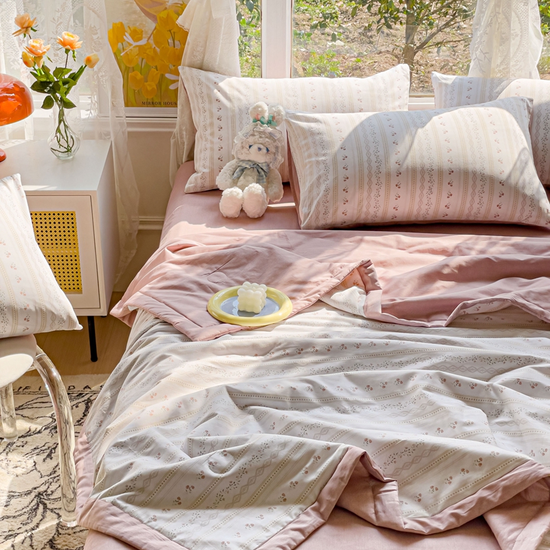 • 91家纺网 家纺一手货源 找家纺 金丝鸟 2023新款全棉大豆夏被四件套 烟雨枫间