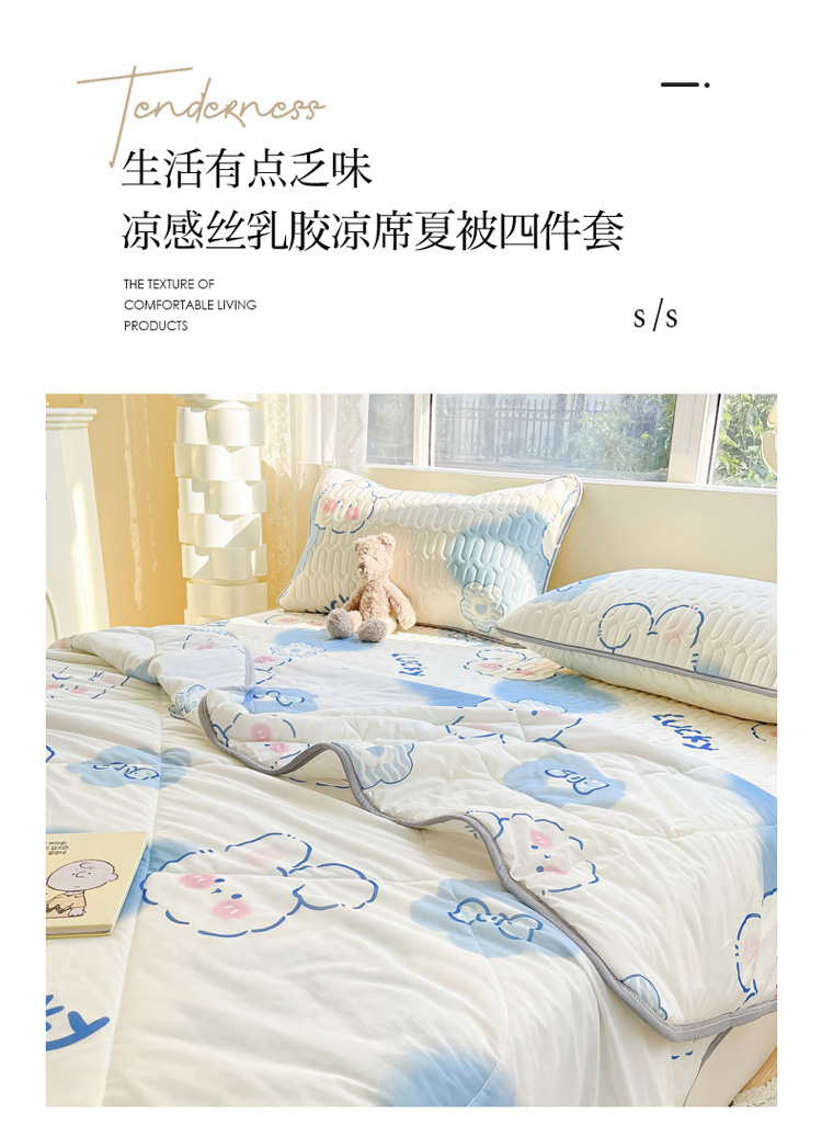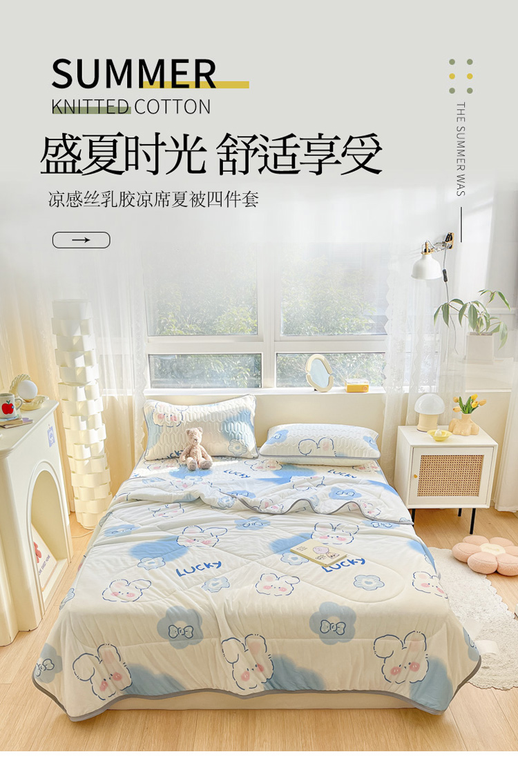 当前位置: 91家纺网 > 商品网购 > 床品套件 > 四件套 > 夏被四件套 > 沐慕2023新款凉感丝夏被四件套 爱心小兔