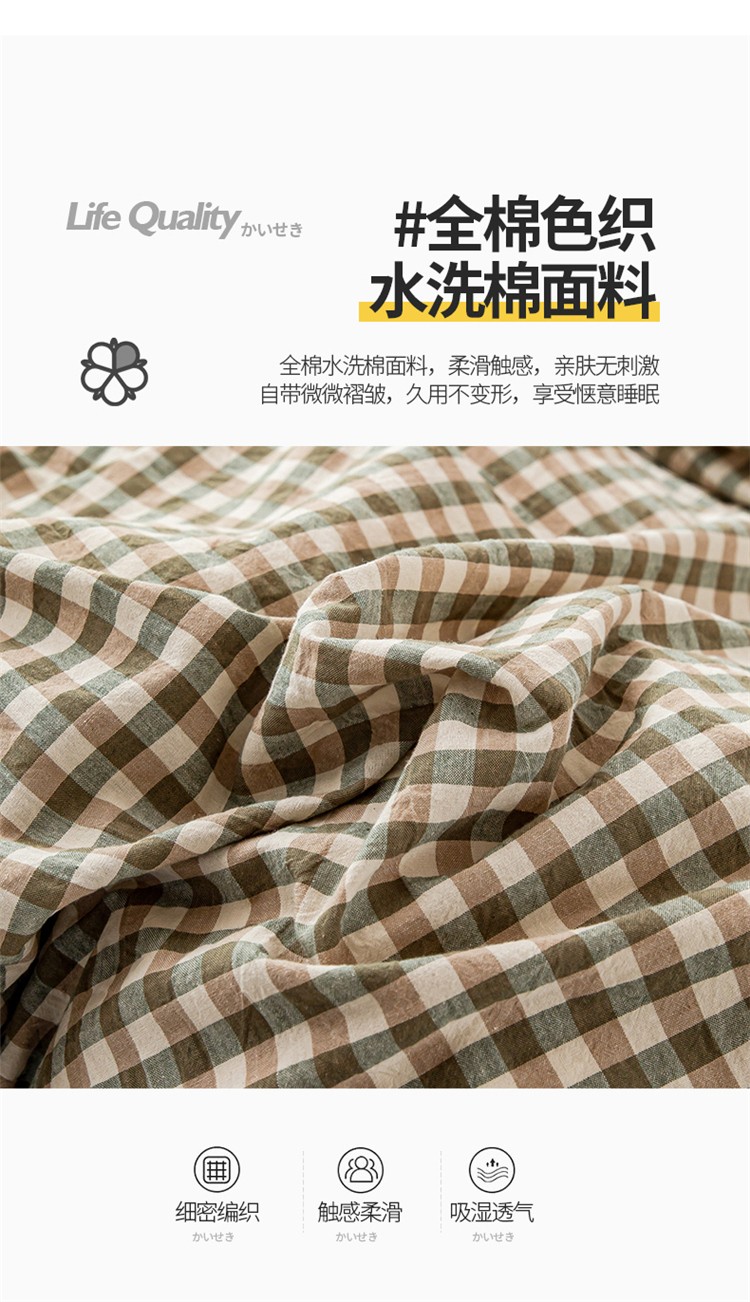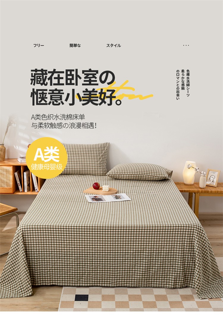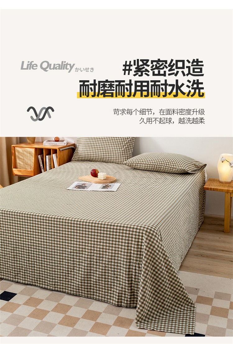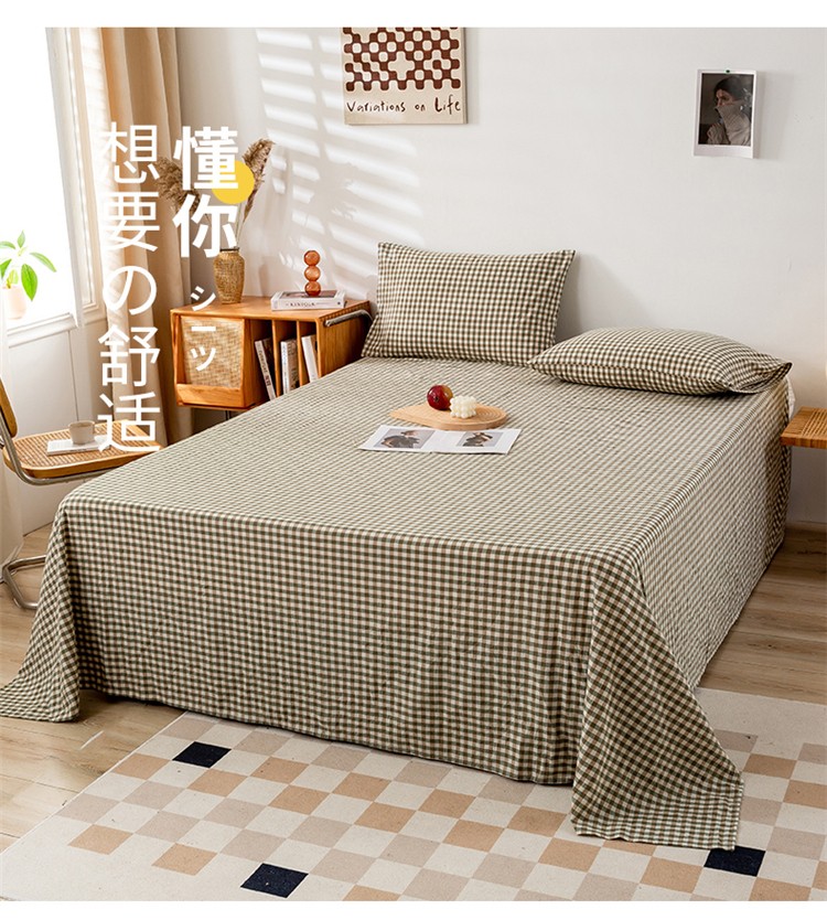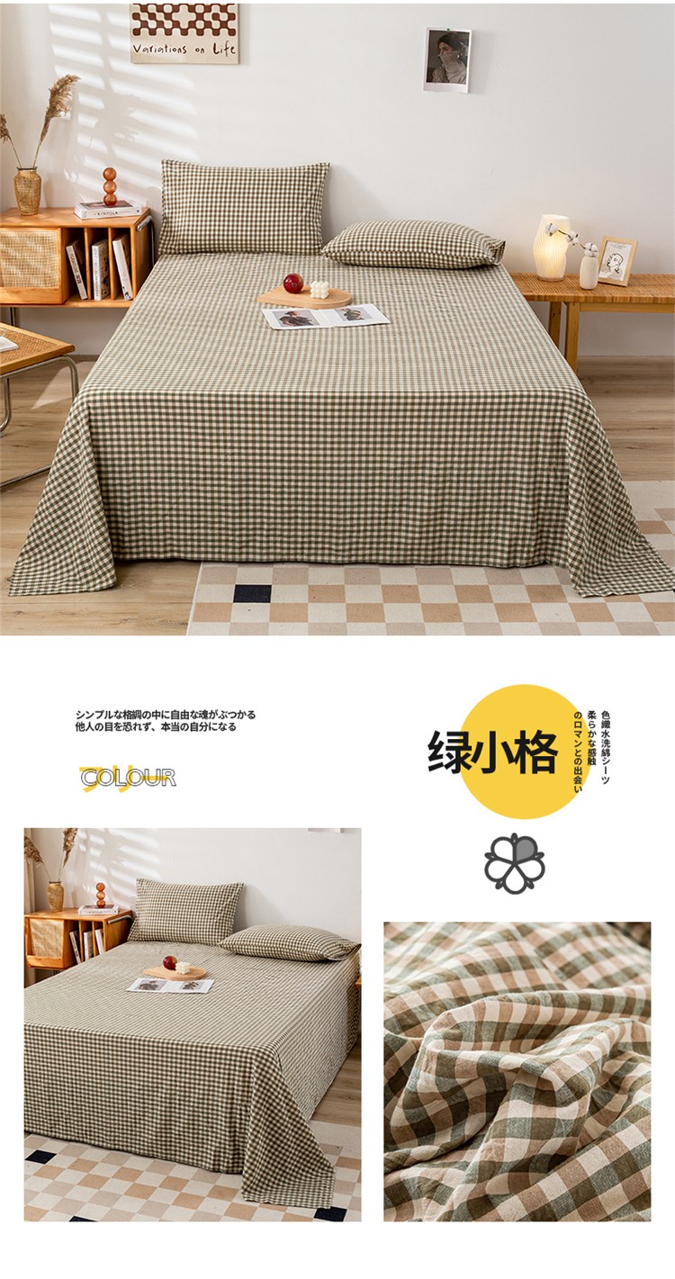 九沐良品 新款A类色织水洗棉床单 绿小格