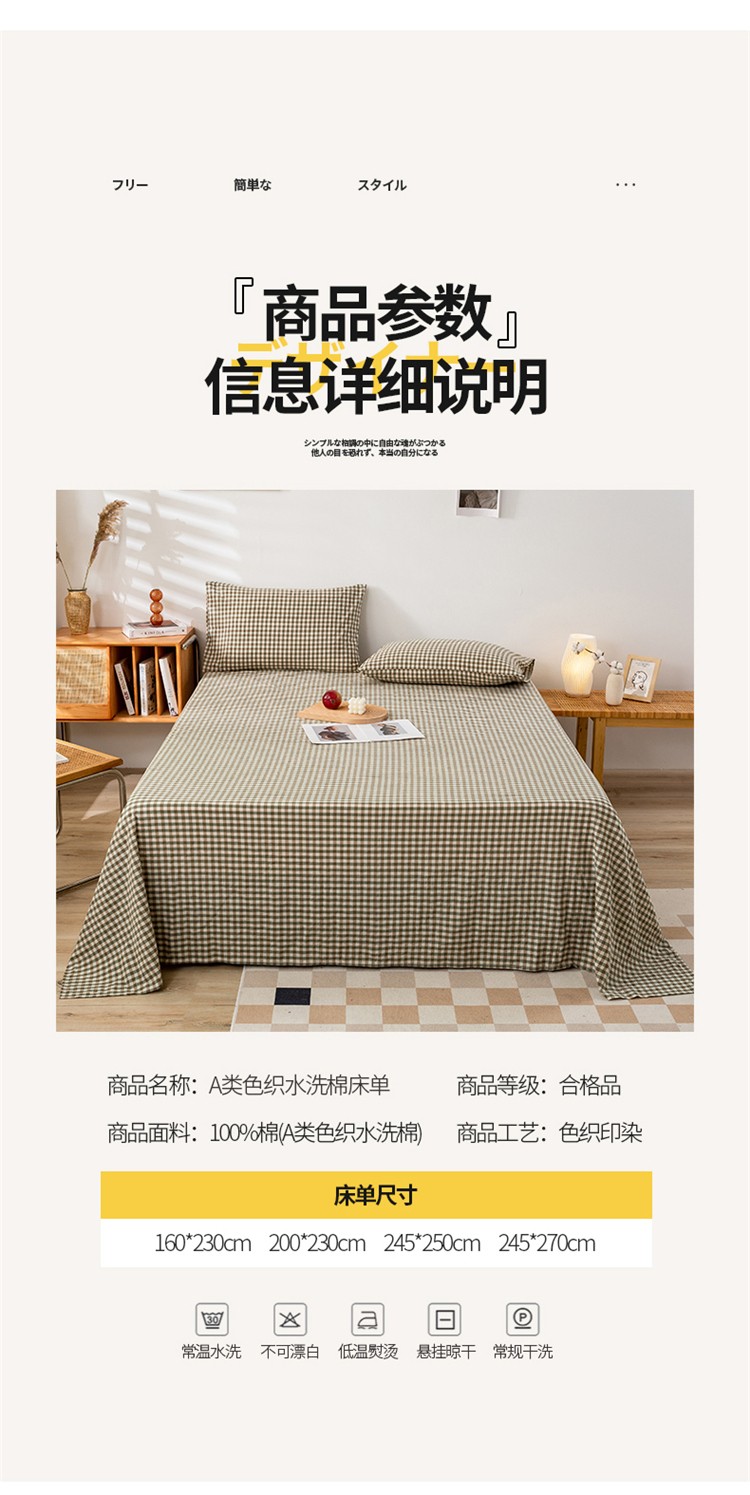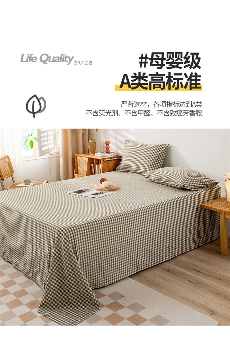 商品名称:九沐良品 新款A类色织水洗棉床单 绿小格