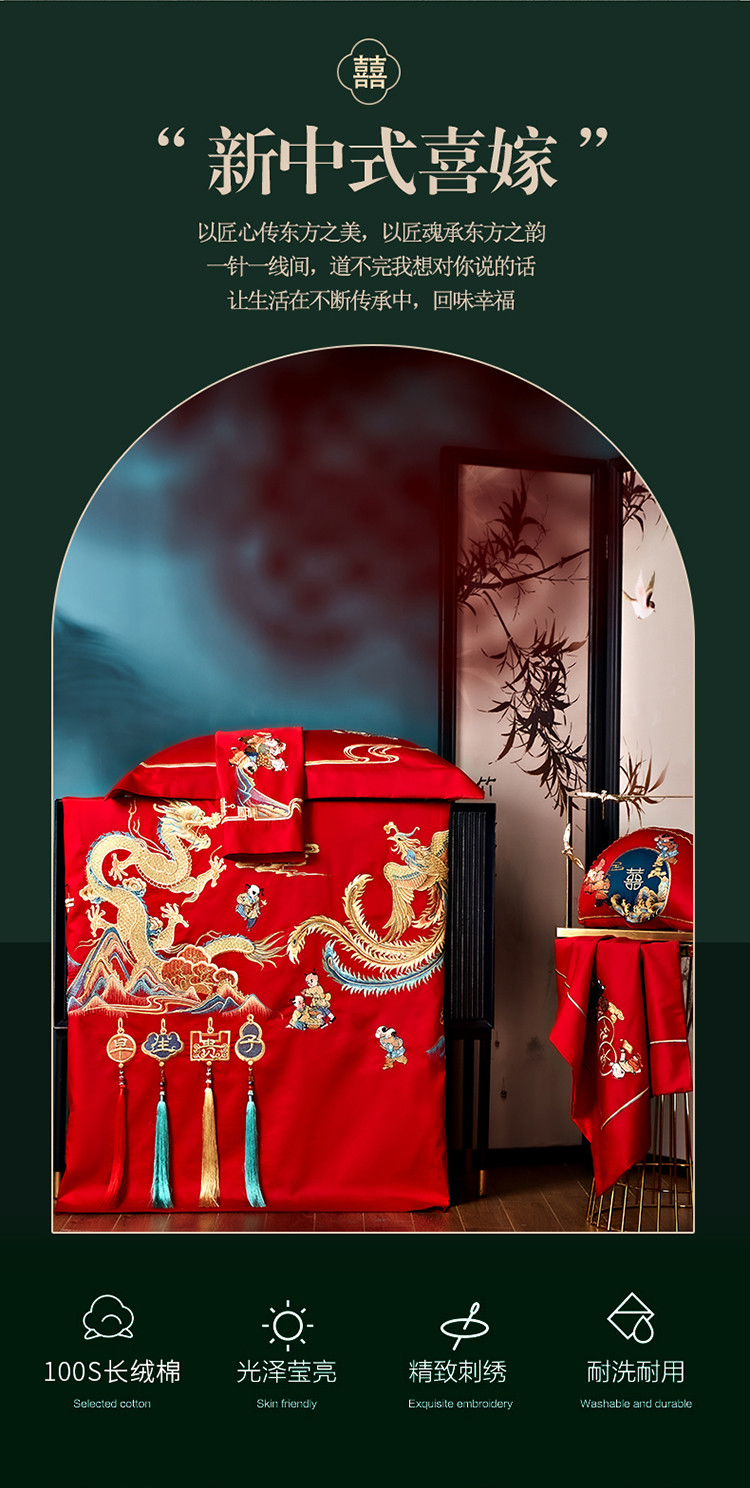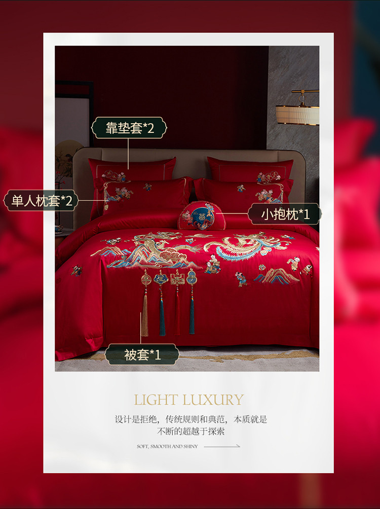 当前位置: 91家纺网 > 商品网购 > 床品套件 > 多件套 > 多件套 > (总)高大尚 2023新品 双股长绒棉提花系列 龙凤百子