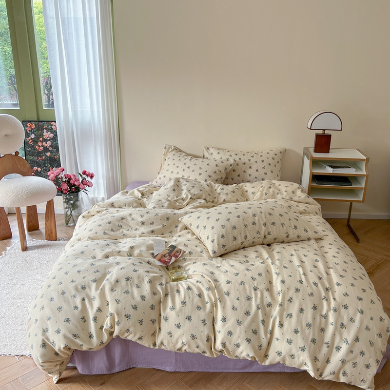商品名称:时年 2023新款全棉双层纱四件套 莹紫