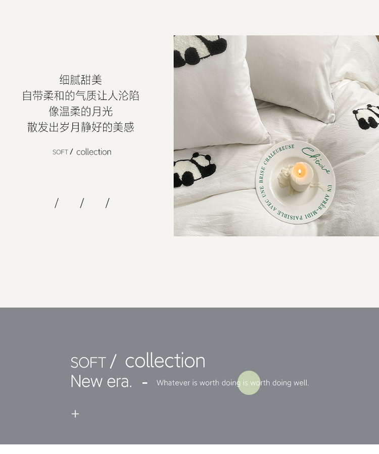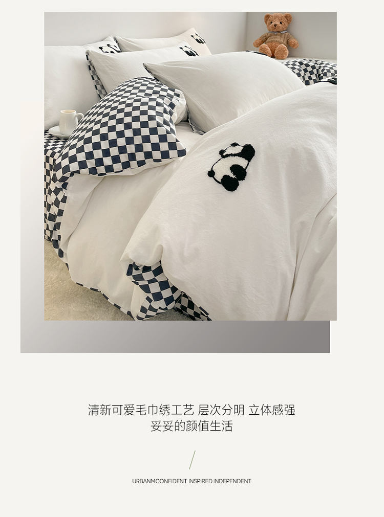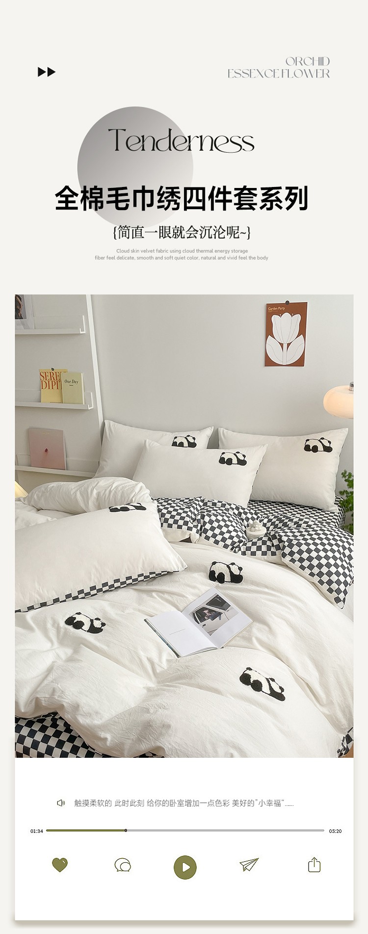 商品名称:雅居纺 2023新款全棉毛巾绣四件套 熊猫乐乐