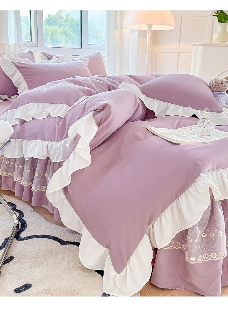 言熙居 2023新款A类清新风床裙四件套 水晶紫