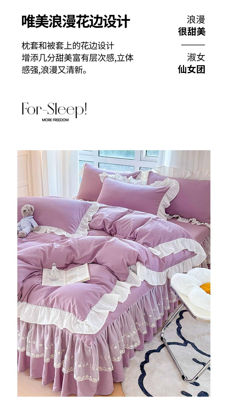 商品名称:言熙居 2023新款A类清新风床裙四件套 水晶紫