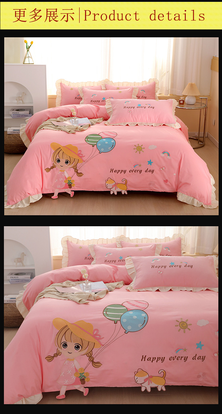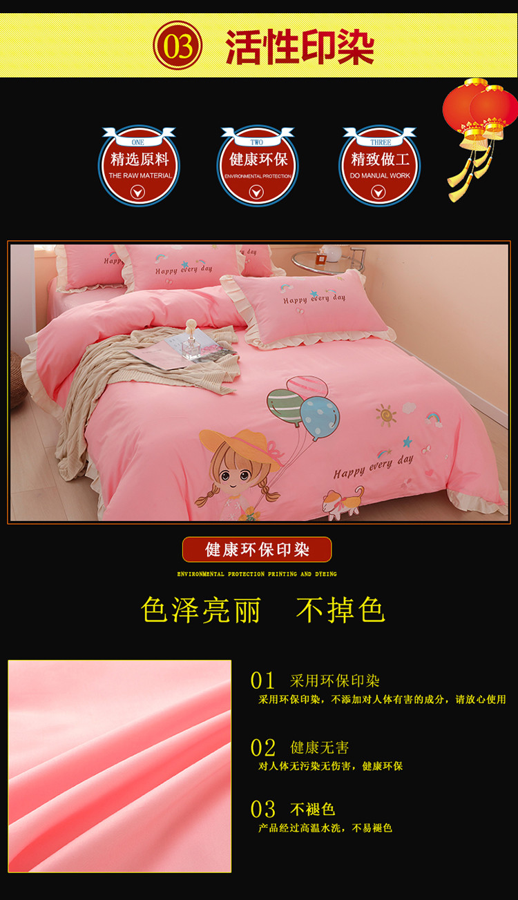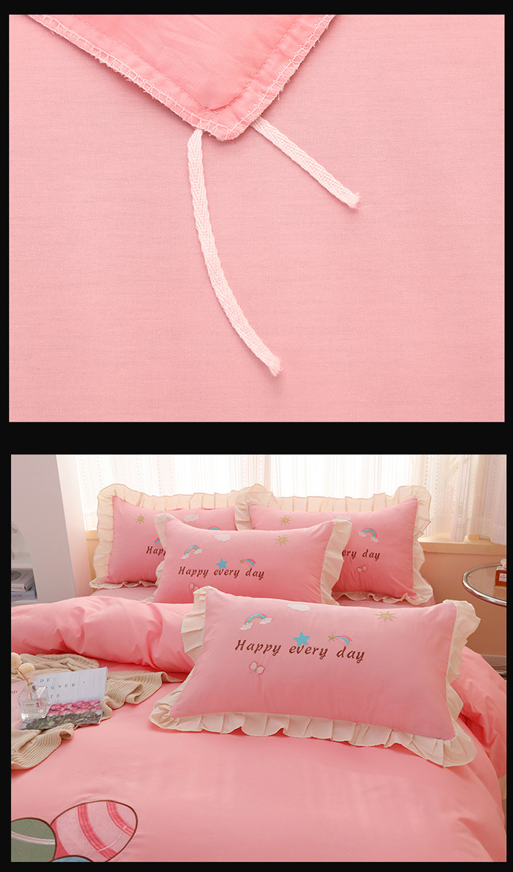 商品名称:慕她婚庆四件套大红色结婚全棉纯棉刺绣花多件套直播 快乐女孩粉玉