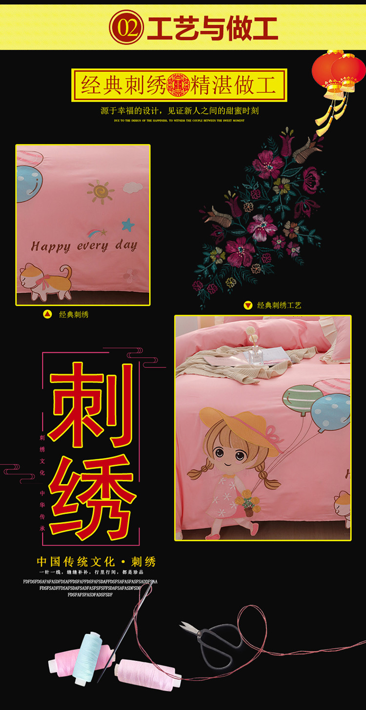 慕她婚庆四件套大红色结婚全棉纯棉刺绣花多件套直播 快乐女孩粉玉