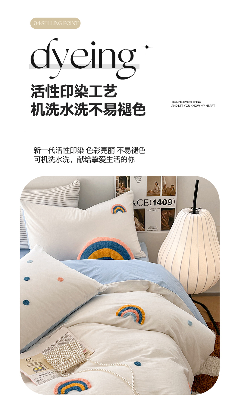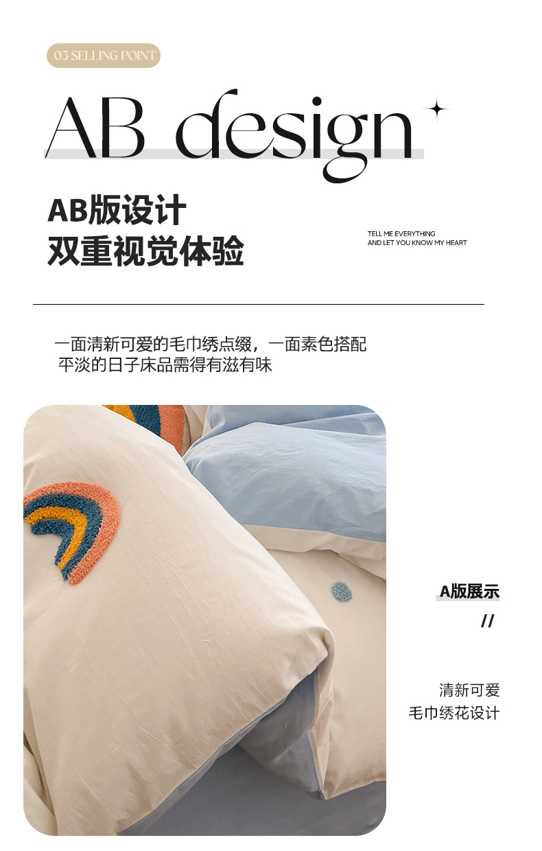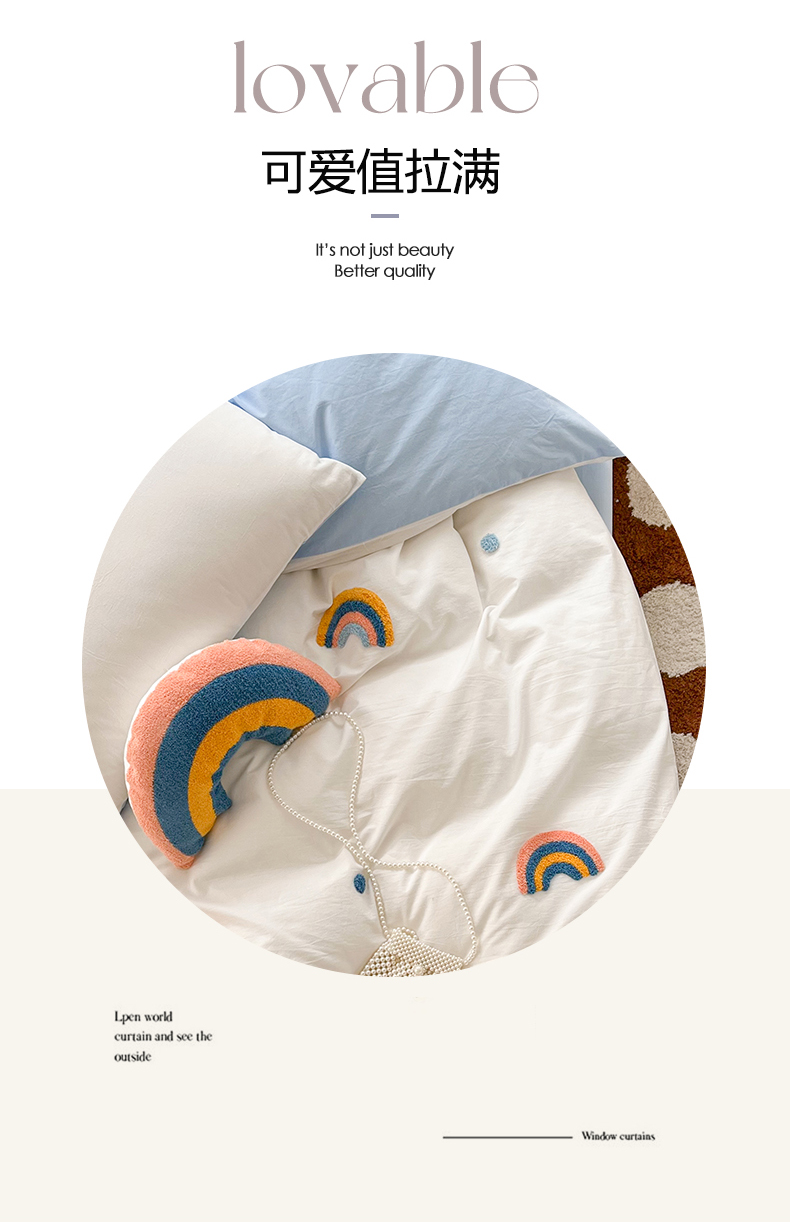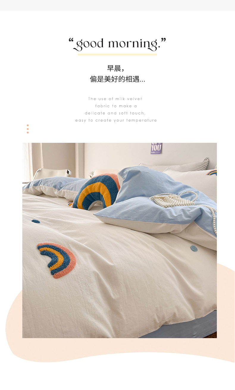 当前位置: 91家纺网 > 商品网购 > 床品套件 > 四件套 > 水洗棉四件套 > 慕尚家纺 2025新款全棉水洗棉毛巾绣四件套 彩虹-白蓝